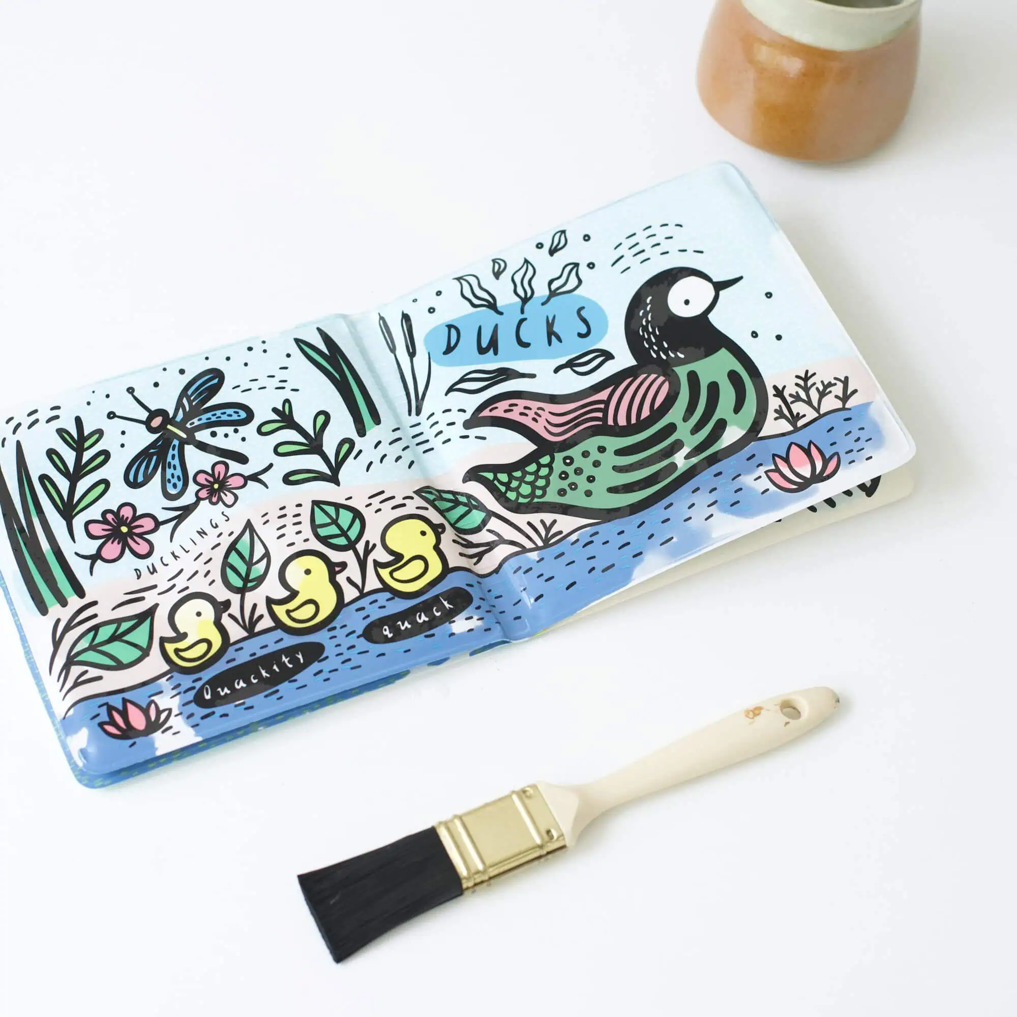 Das magische Badebuch „Color Me: Wer ist im Teich?“ wechselt im Wasser die Farbe und zeigt Teichbewohner wie Frosch, Schwan und Libelle. Drückbar, leicht und sicher für stundenlangen Badespaß.