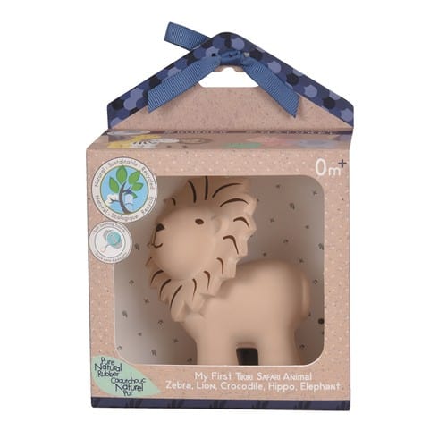 Der Tikiri Rassel Löwe aus der „Meine Safari“ Kollektion besteht komplett aus natürlichem Latex und verfügt über eine Textur, die auch kleinen Händen leichtes Greifen und Halten erlaubt. Er wurde in Handarbeit hergestellt und sogar von Hand bemalt. Das macht ihn zu einem echten Unikat! Das Tier ist 8 cm lang, 12 cm hoch und trägt eine Rassel im Körper, die beim Schütteln ein sanftes Geräusch erzeugt.