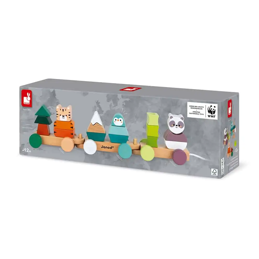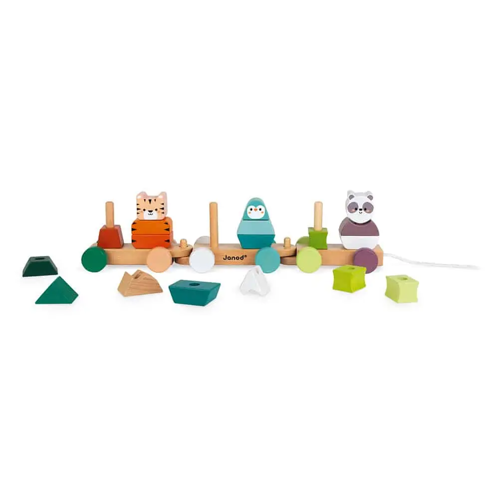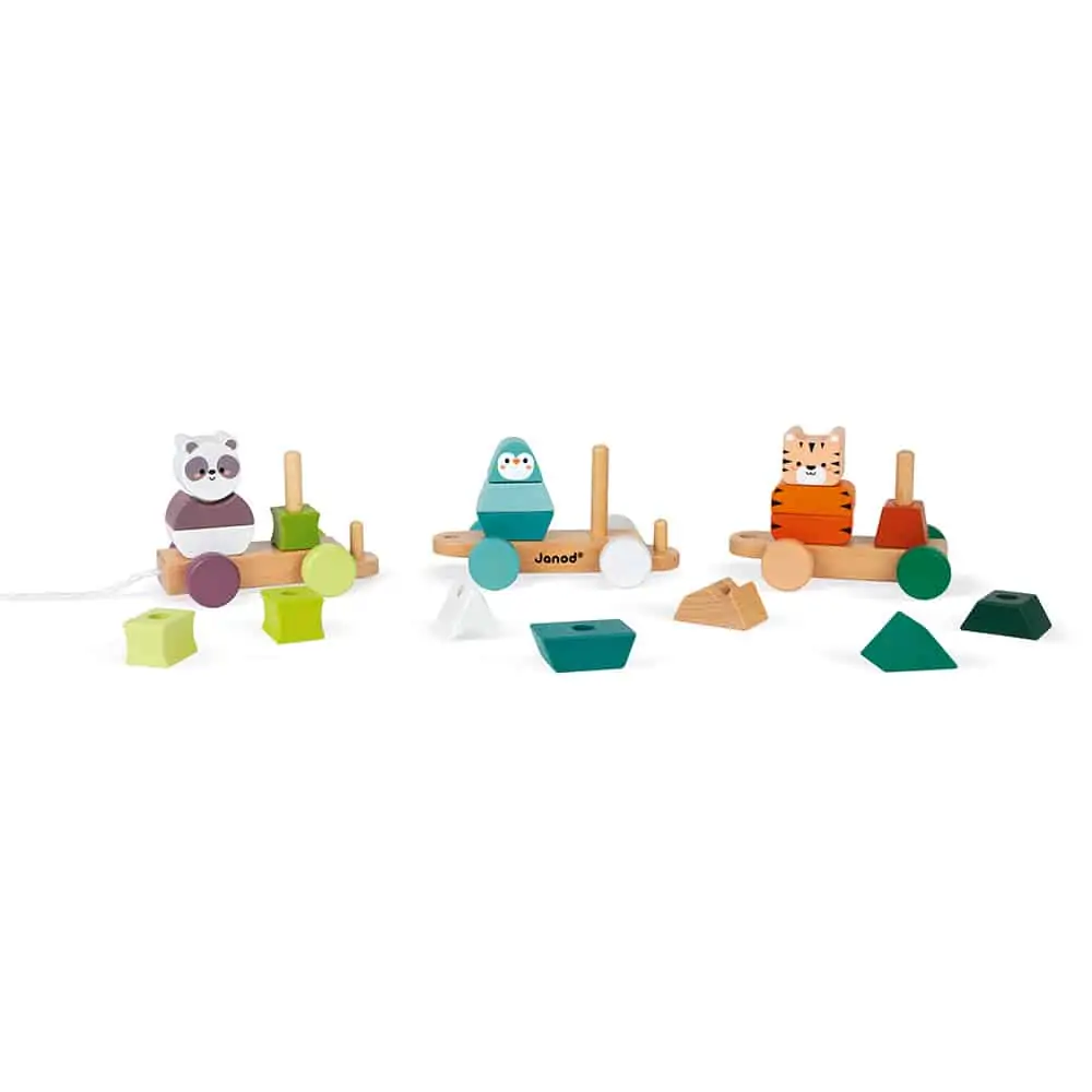 Janod Nachziehzug Tiger, Panda & Pinguin – Ziehen und Stapeln in Einem