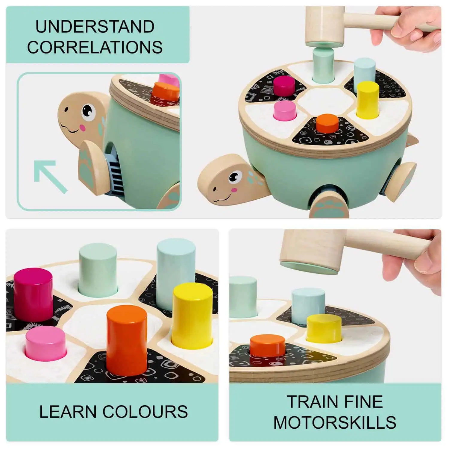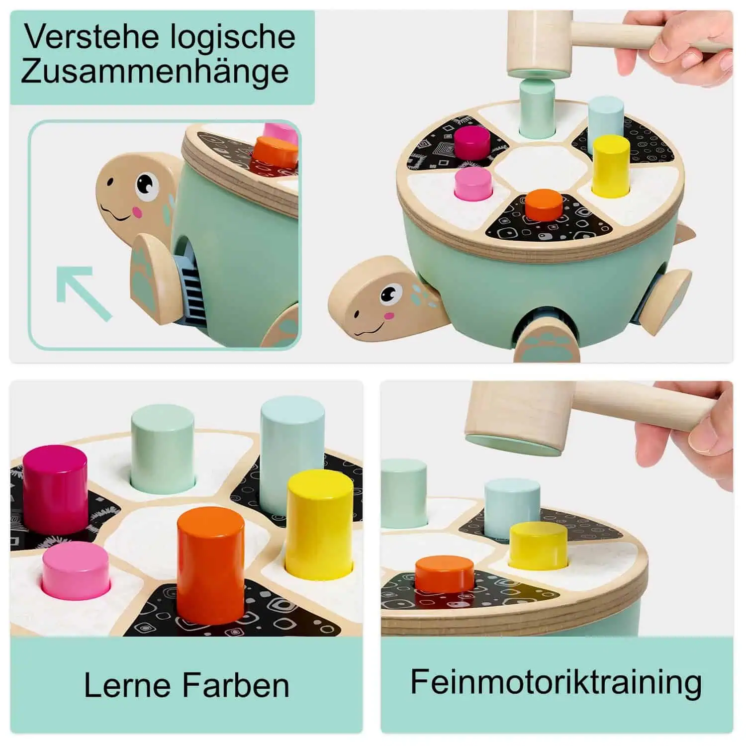 Das TOPBRIGHT Hammer Turtle Klopfspiel fördert spielerisch Feinmotorik, Hand-Augen-Koordination und logisches Denken bei Kleinkindern ab 18 Monaten.