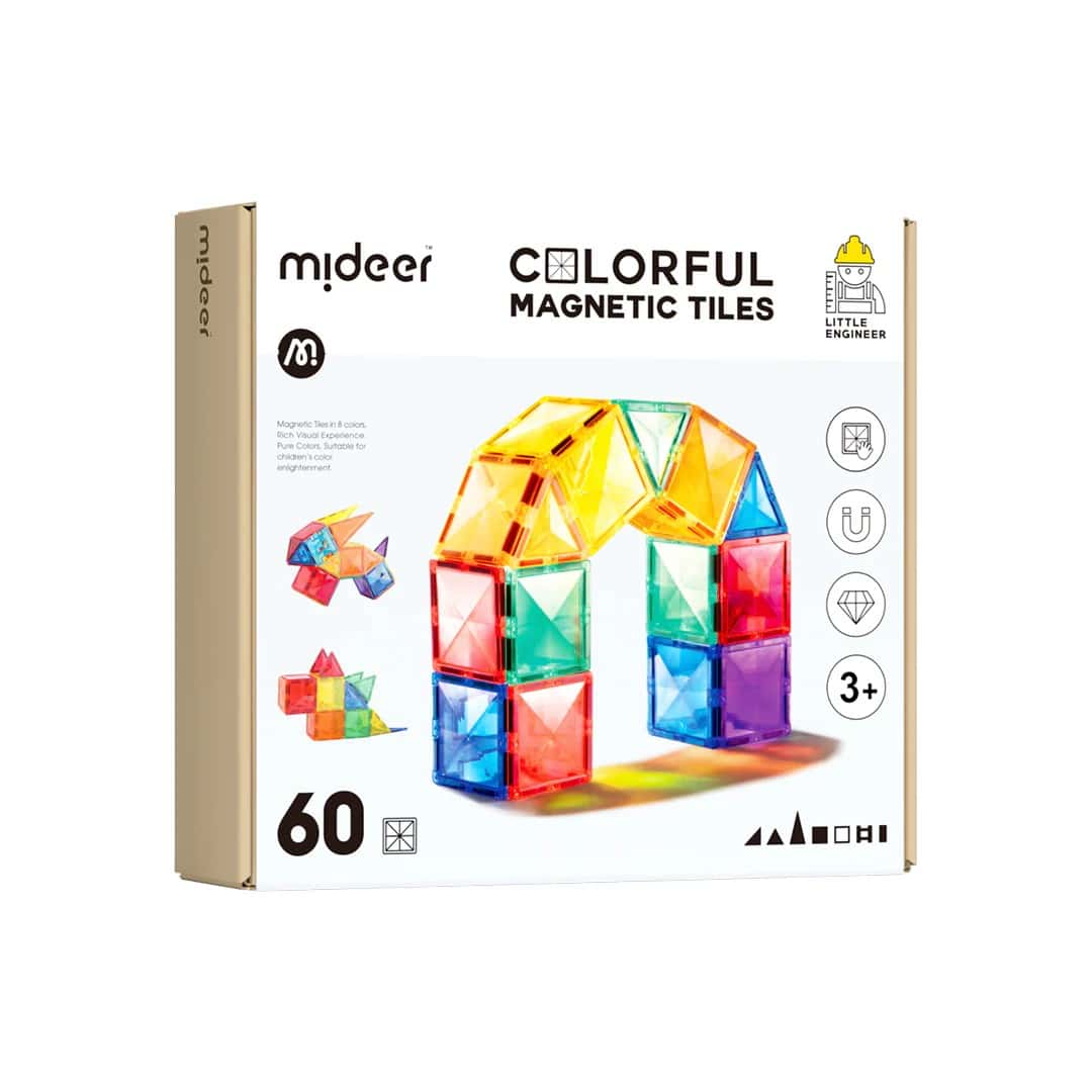 Mideer – Colorful Magnetic Tiles – 60 Teile – Magnetbausteine für Kinder