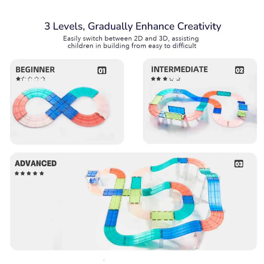 - Marke/Produkt: Mideer – Racing Track Grooved Magnetic Tiles 115P