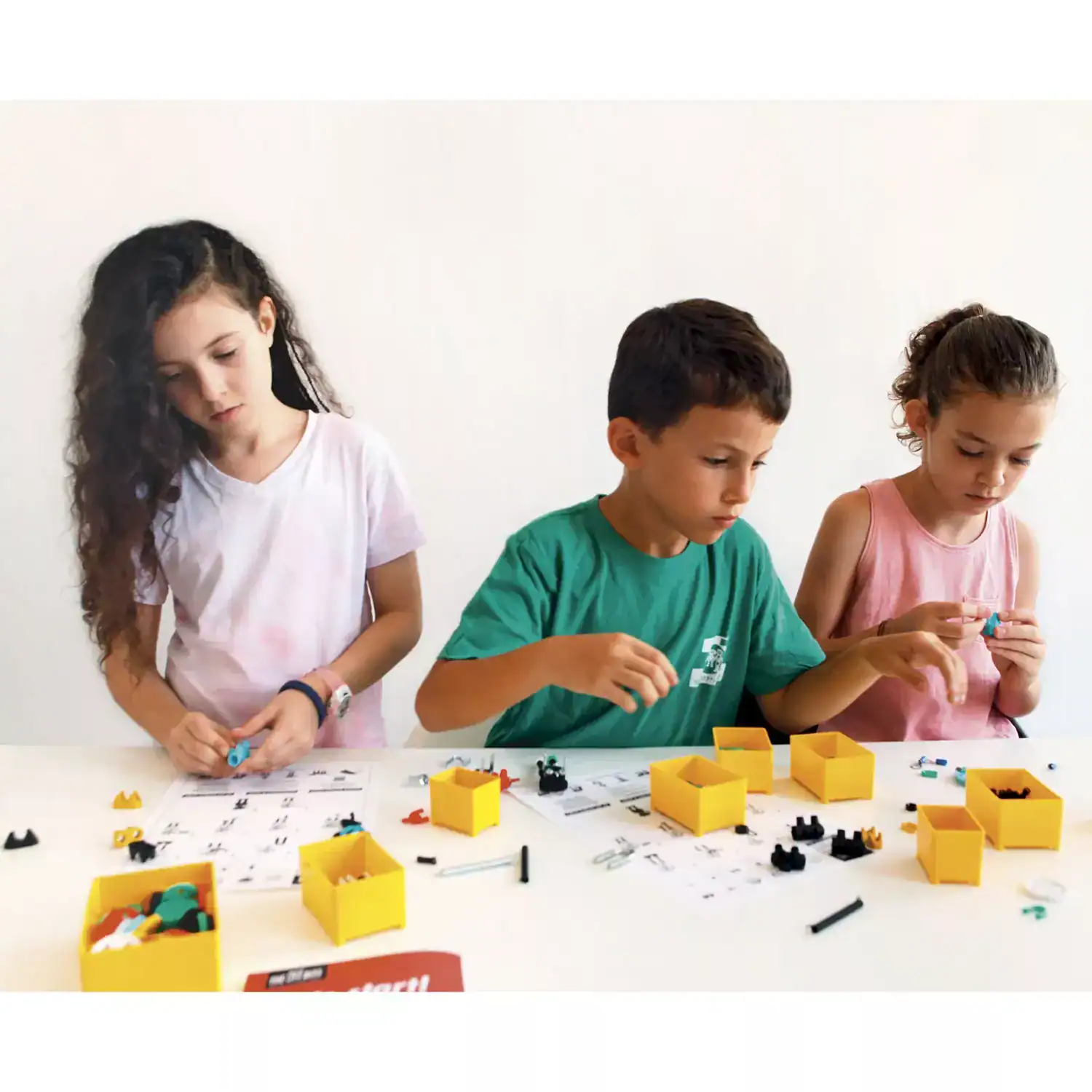 Das Group Makers Kit von The OFFBITS verwandelt jeden Workshop, jede Schulklasse oder Feier in ein kreatives Konstruktionslab: Über 750 Einzelteile ermöglichen es bis zu 20 Mitbauern, gleichzeitig an Figuren, Fahrzeugen und frei gewählten „out-of-the-box“-Modellen zu tüfteln. Metall-SuperTools erleichtern das Schrauben und Montieren, während die beiliegende Schritt-für-Schritt-Anleitung und das Bühnenbild den Prozess strukturieren und ansprechend dokumentieren.