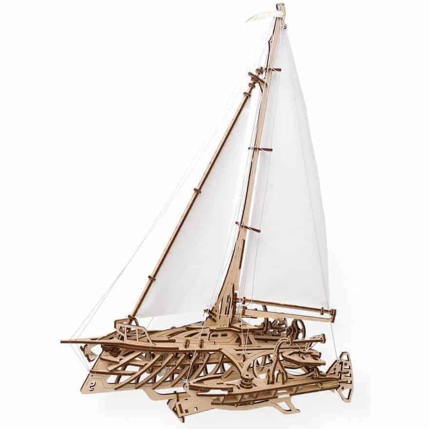 Ugears hat ein elegantes und anmutiges mechanisches Modell entwickelt, dass eine Vielzahl von Details beinhaltet. Mit Winschen, Takelagen und Rümpfen entsteht ein voll funktionsfähiges Mehrrumpf-Segelboot. Schotten, Rahmen, Balken und Ruderblätter runden das Ganze ab. Bootsfreunde werden hier voll auf ihre Kosten kommen.