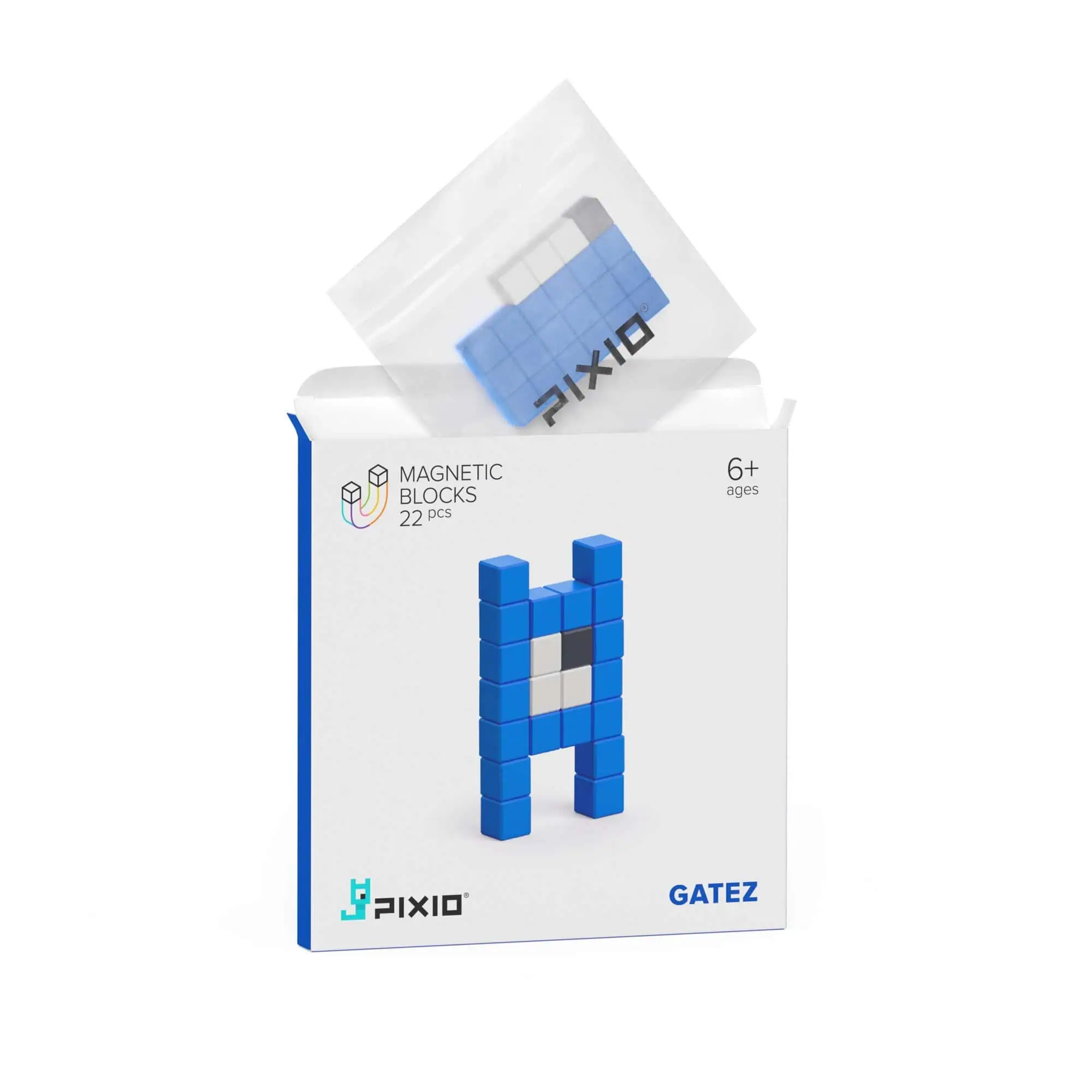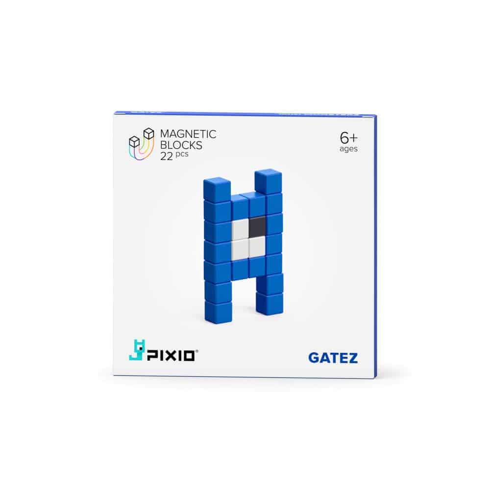 22 magnetische PIXIO-Bausteine in Blau, Weiß, Schwarz – baue Gatez, deinen kleinen Pixel-Wächter, und viele weitere Mini-Figuren. Kompatibel mit allen PIXIO Sets; App-Inspirationen für Kinder & Erwachsene.