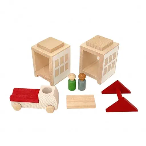 - Holzspielzeugautos und Bus: Die liebevoll gestalteten Holzautos und Busse sind perfekt auf die Stadtlandschaften abgestimmt und ergänzen jedes Spielset ideal.