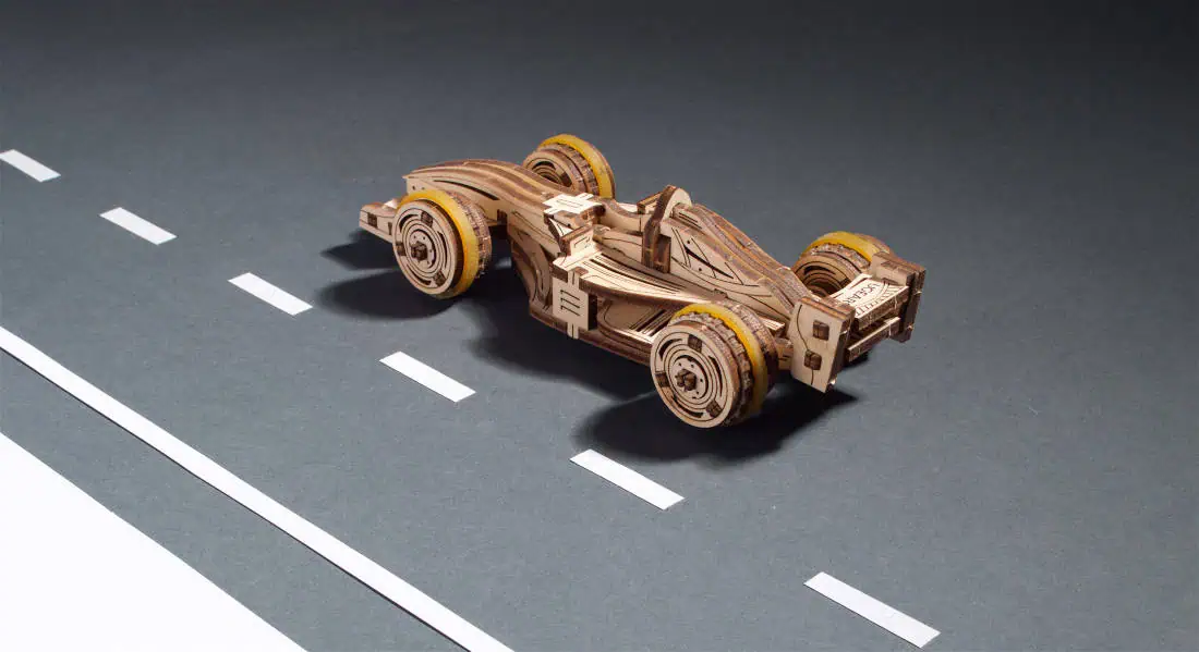 Der Ugears Compact Rennwagen ist ein DIY Holzmodell im Stil eines Hochleistungsrennwagens. Einfache Montage, keine Werkzeuge nötig. Perfekt für junge Autofans, die Spaß am Bauen und Spielen haben.