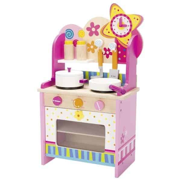 Die goki Küche Susibelle in hellen Farben ist ein farbenfrohes Küchenset aus Holz. Die Herdklappe ist leicht zu öffnen und das Backblech kann herausgezogen werden. Das Zubehör mit Herdplatte, Pfanne, etc. lässt authentisches Küchenflair entstehen und die qualitativ hochwertige Verarbeitung des Holzes lässt auch optisch keine Wünsche offen. Das perfekte Accessoire für die moderne Puppenküche – stabil und alltagstauglich.
