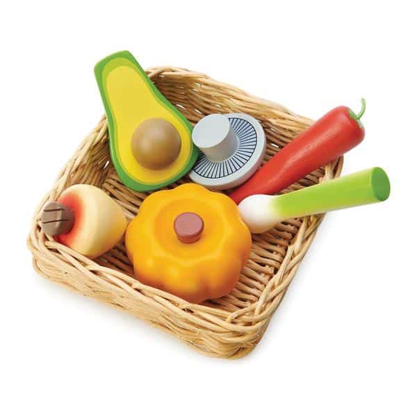 Rollenspiel-Set aus Holz mit 5 verschiedenen Gemüsesorten für die Spielküche oder den Kaufladen.