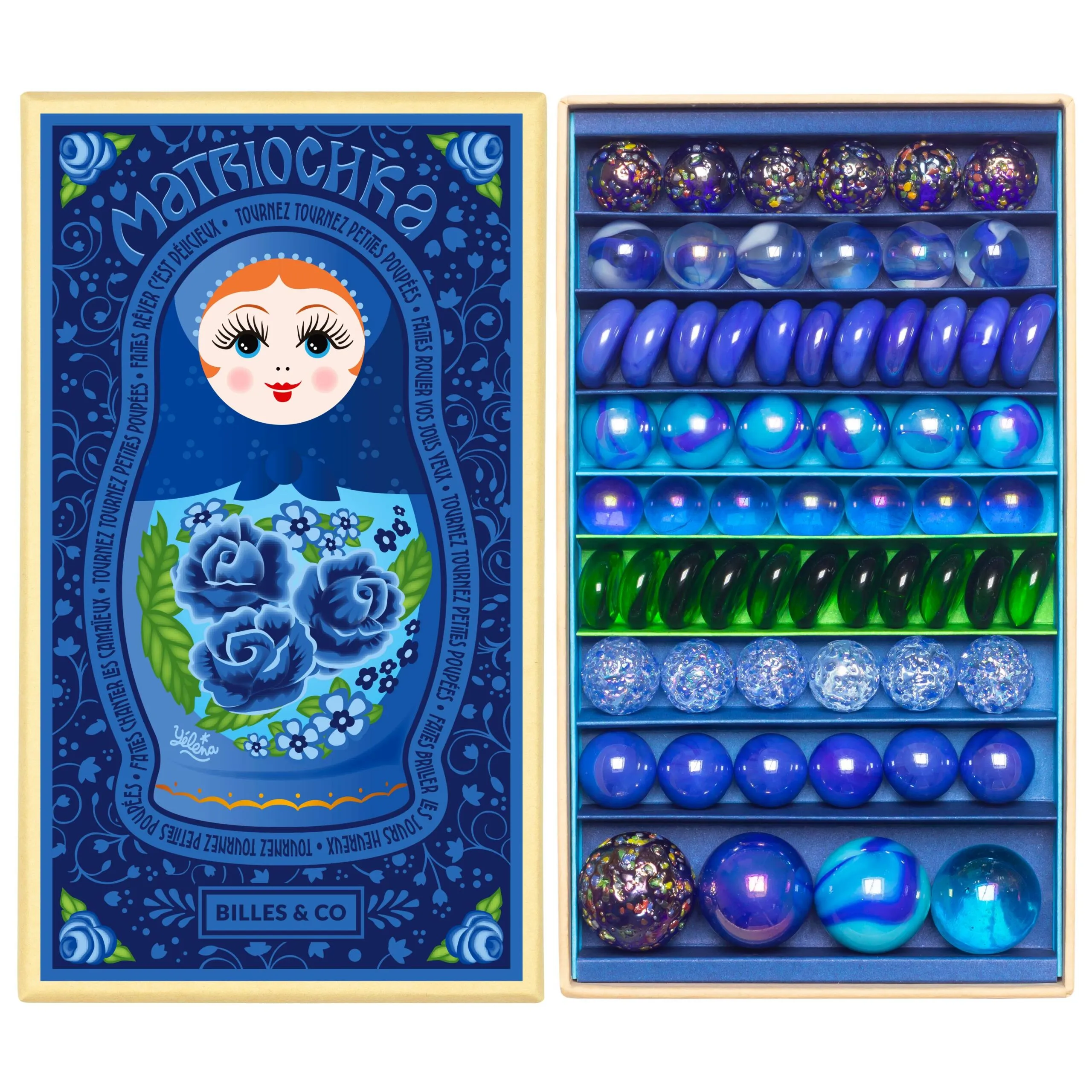 Entdecken Sie mit Billes & Co die schillernde Welt der Murmeln, die Kunst und Spiel in einem vereinen. Diese in Paris ansässige Marke hat es sich zur Aufgabe gemacht, die traditionelle Freude am Murmelspiel mit einem Hauch von französischer Eleganz und Kreativität zu bereichern. Jede Murmelkollektion von Billes & Co ist sorgfältig kuratiert und präsentiert sich in wunderschön gestalteten Boxen, die selbst als dekorative Elemente in jedem Raum hervorstechen.