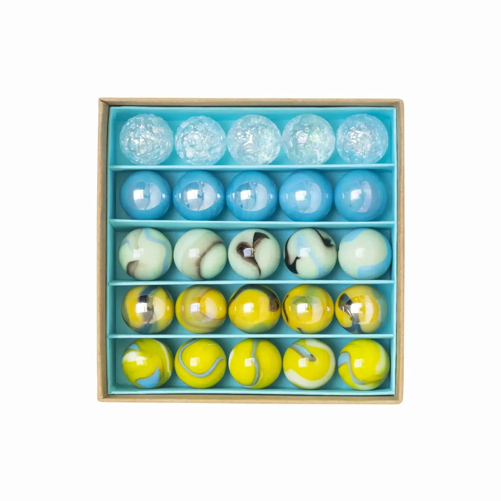 Entdecken Sie mit Billes & Co die schillernde Welt der Murmeln, die Kunst und Spiel in einem vereinen. Diese in Paris ansässige Marke hat es sich zur Aufgabe gemacht, die traditionelle Freude am Murmelspiel mit einem Hauch von französischer Eleganz und Kreativität zu bereichern. Jede Murmelkollektion von Billes & Co ist sorgfältig kuratiert und präsentiert sich in wunderschön gestalteten Boxen, die selbst als dekorative Elemente in jedem Raum hervorstechen.