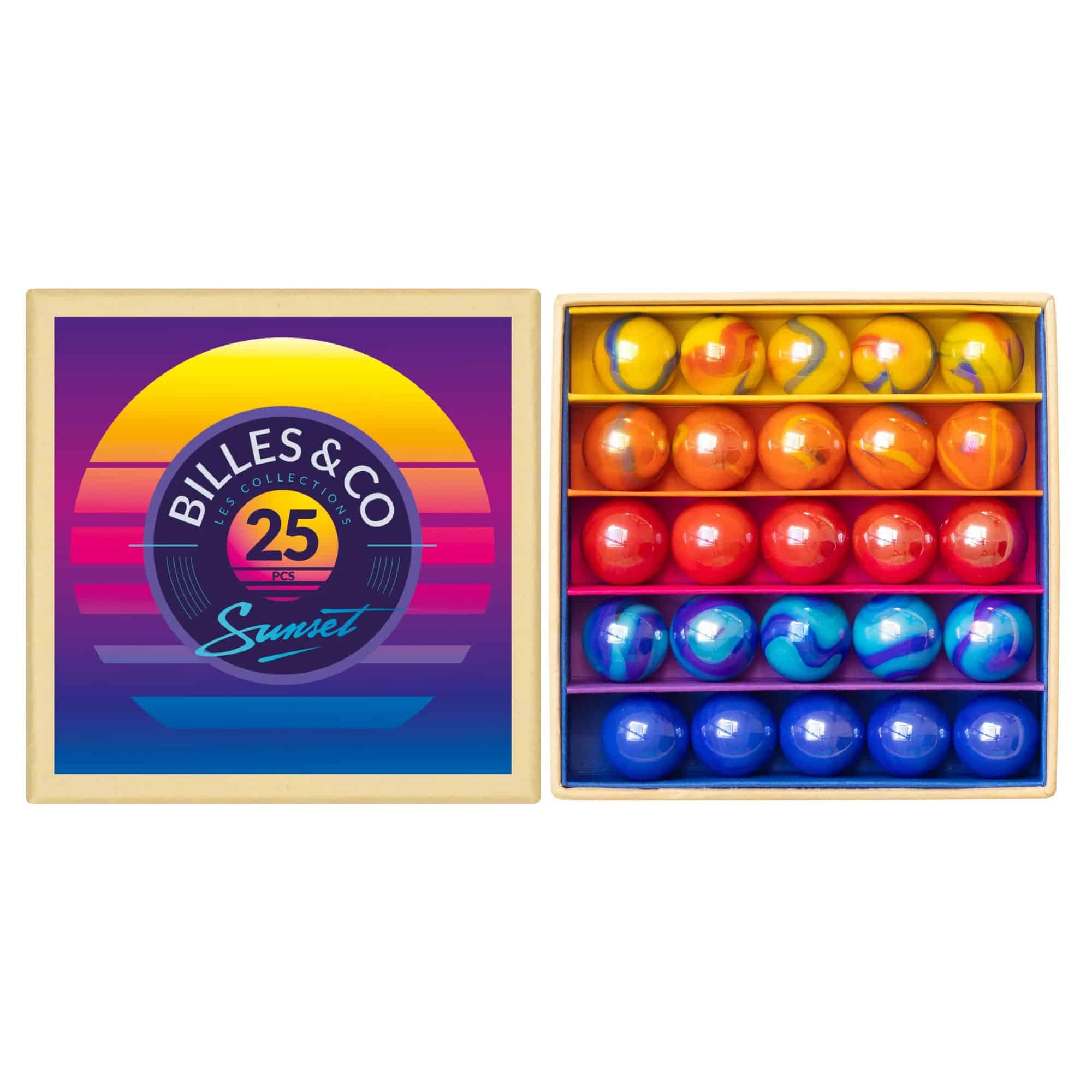 Entdecken Sie mit Billes & Co die schillernde Welt der Murmeln, die Kunst und Spiel in einem vereinen. Diese in Paris ansässige Marke hat es sich zur Aufgabe gemacht, die traditionelle Freude am Murmelspiel mit einem Hauch von französischer Eleganz und Kreativität zu bereichern. Jede Murmelkollektion von Billes & Co ist sorgfältig kuratiert und präsentiert sich in wunderschön gestalteten Boxen, die selbst als dekorative Elemente in jedem Raum hervorstechen.