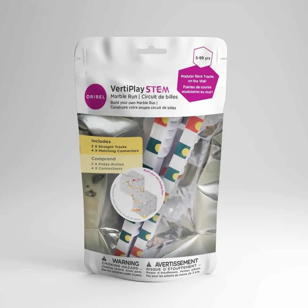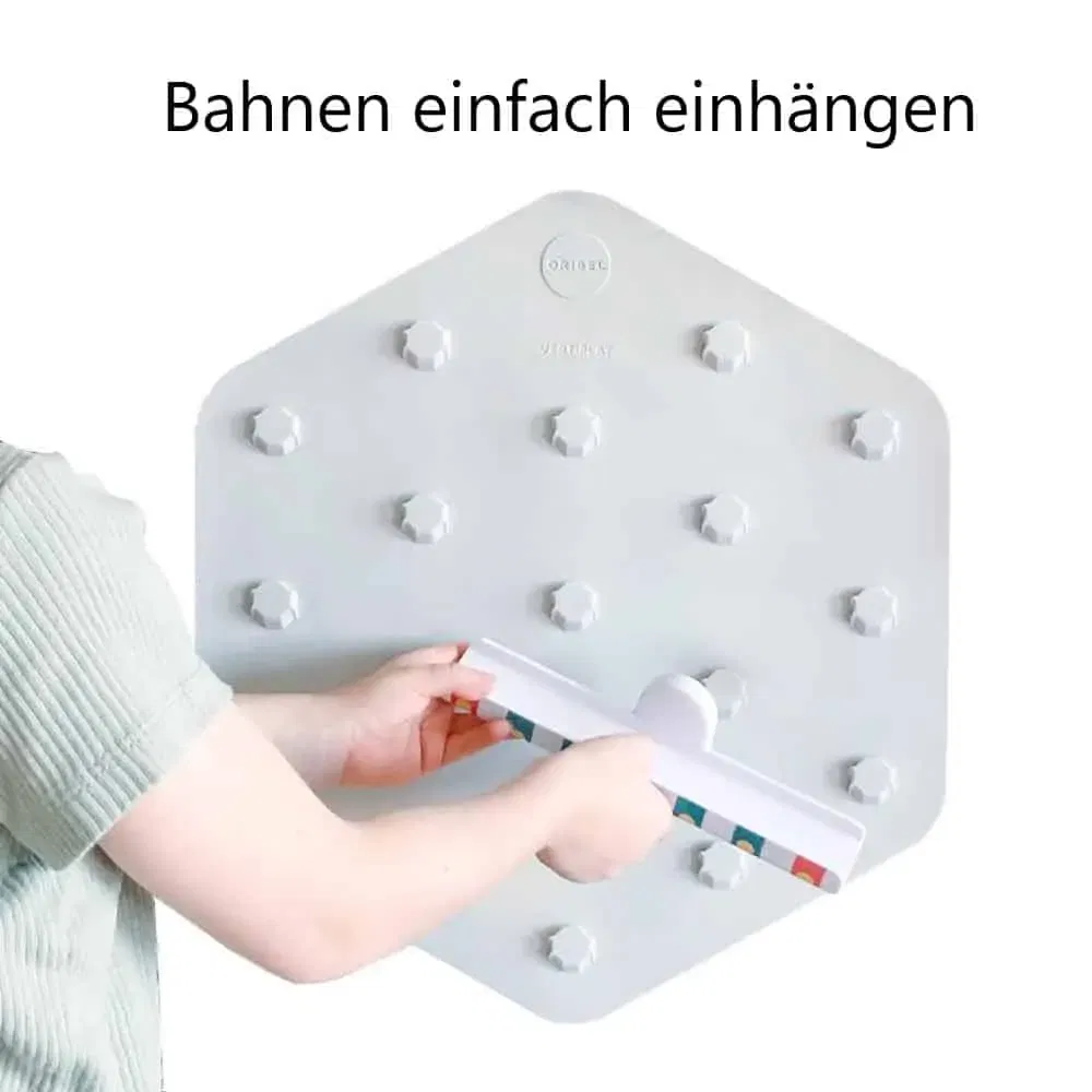 Entdecke Oribels innovative Kugelbahn für die Wand. Klebe einfach einen oder mehrere Basis-Sticker an die Wand und füge beliebig viele gerade oder kurvige Bahnen hinzu, um eine Strecke für die Kugel zu bauen. Du kannst deine Kugelbahn jederzeit umbauen und sie steht nie im Weg herum, denn sie klebt ja an der Wand. Die Sticker lassen sich rückstandslos entfernen und immer wieder verwenden.
