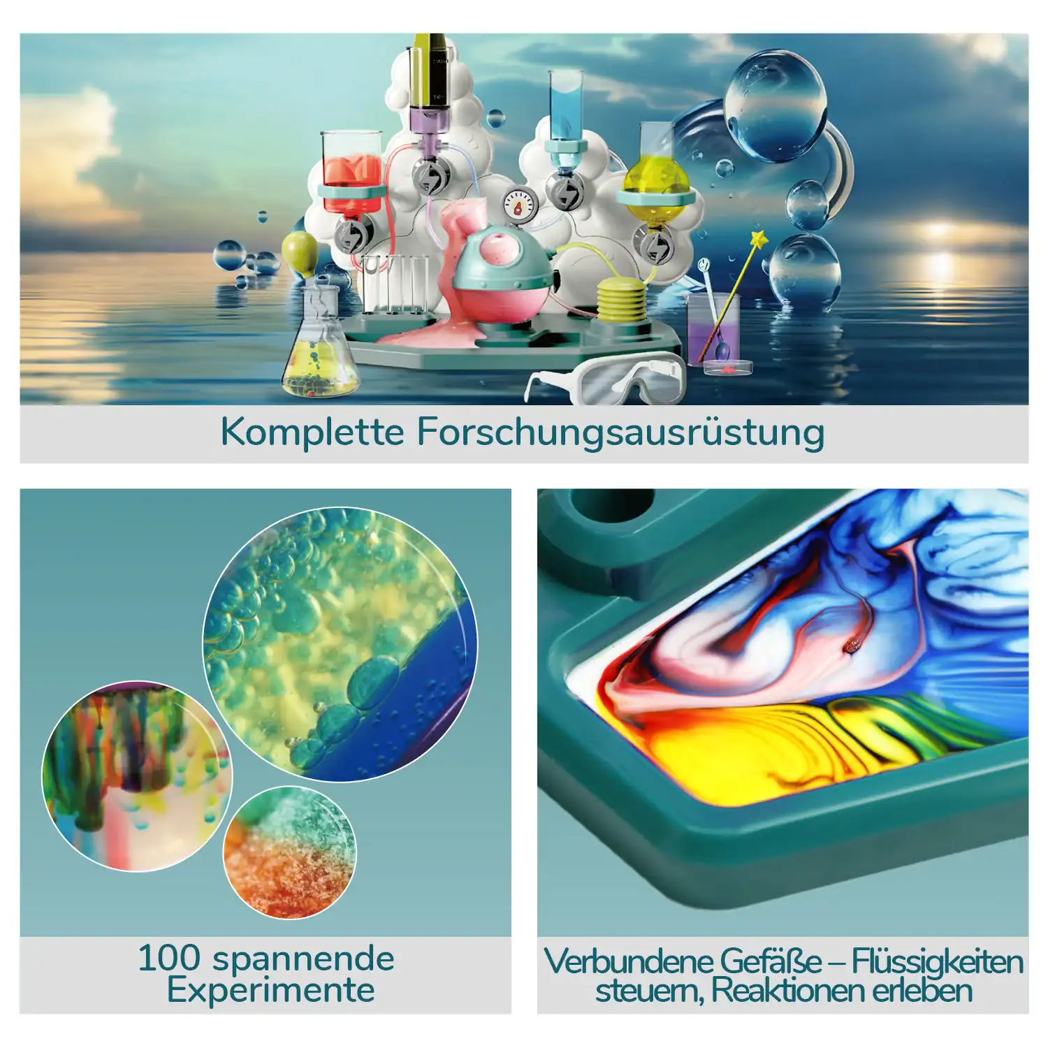 - Fördert MINT durch hands-on Erleben chemischer Prozesse (Säure-Base, Gasbildung, Oberflächenspannung).