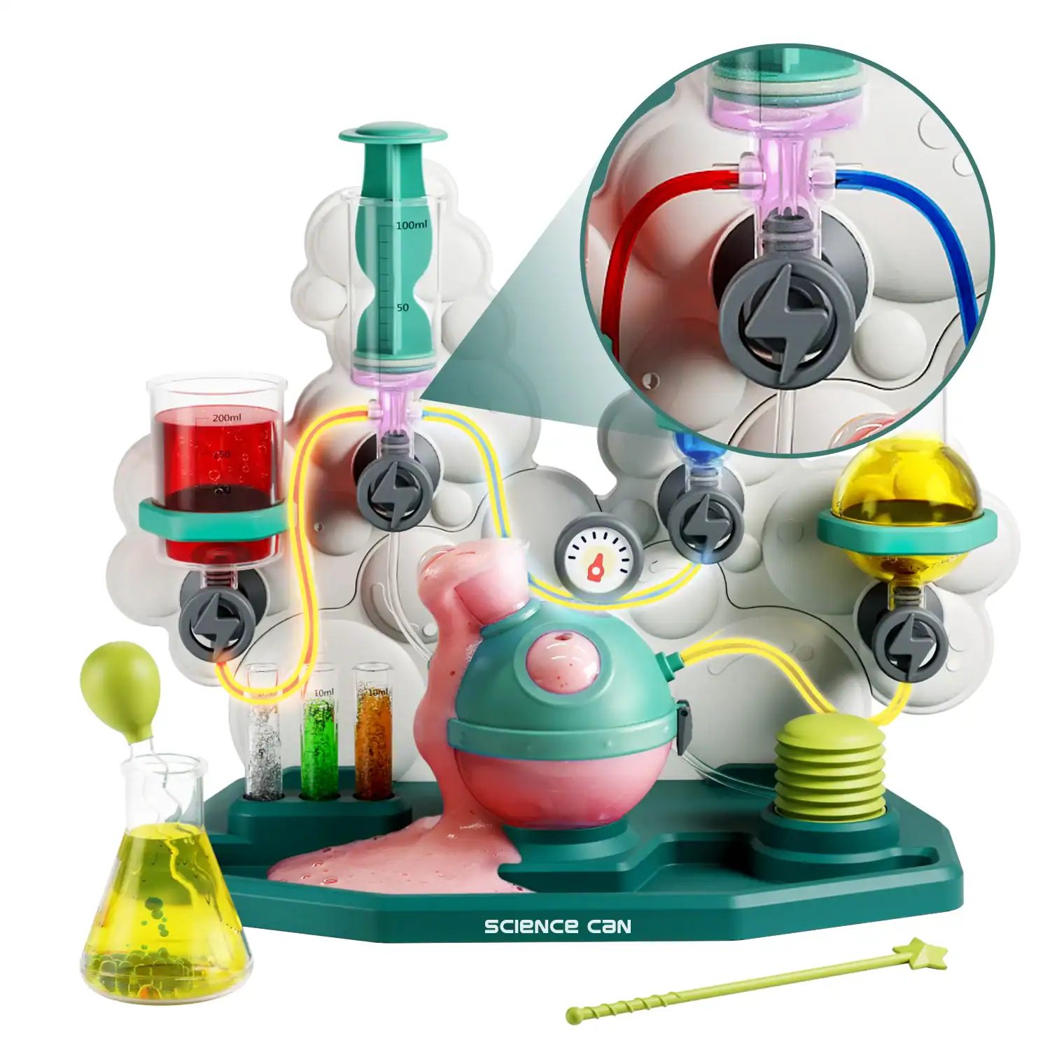 Chemistry Lab Fusion bringt 100+ Experimente nach Hause: verbundene Gefäße, Pumpen & Laborwerkzeug für Farbreaktionen, Schaum-Vulkane & Reaktionsketten – ab 8 Jahren.