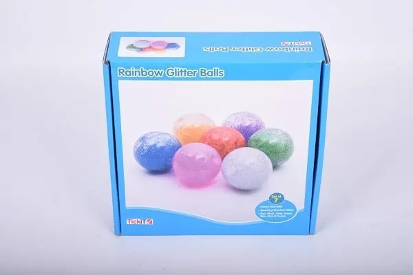Hast du schon einmal einen Regenbogen in der Hand gehalten? Mit Tickit Sensory Rainbow Glitter Balls kannst du das jetzt tun! Das Set enthält sieben Bälle in den Farben rot, silber, gold, grün, blau, pink und lila. Wenn du die Bälle bewegst, wirbeln funkelnde Sternenstaubpartikel im Inneren herum und erzeugen ein faszinierendes Schauspiel. Es ist perfekt für Jungen und Mädchen und wird deine Vorstellungskraft anregen und deine Konzentration verbessern.