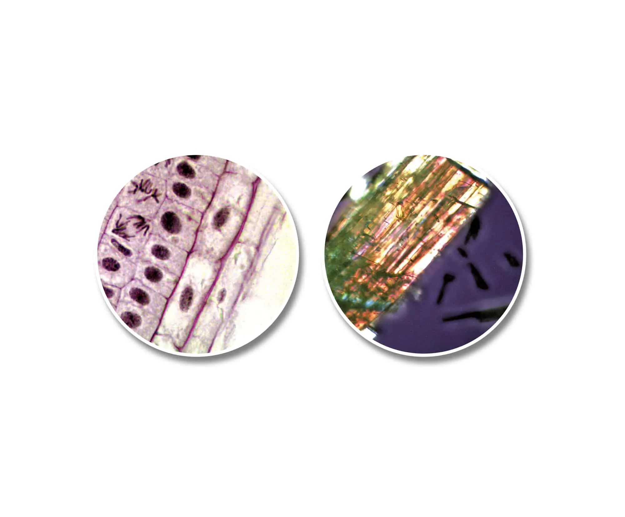 Alles, was du zum Loslegen brauchst, ist in dem Koffer enthalten. Lege die mitgelieferten AA Batterien ein und untersuche die vorgefertigten Präparate auf dem höhenverstellbaren Objekttisch. Oder nutze das Zubehör, um deine eigenen Präparate zu erstellen. Dank der Smartphone-Halterung kannst du deine Entdeckungen direkt für die Ewigkeit festhalten und mit deinen Freunden teilen.