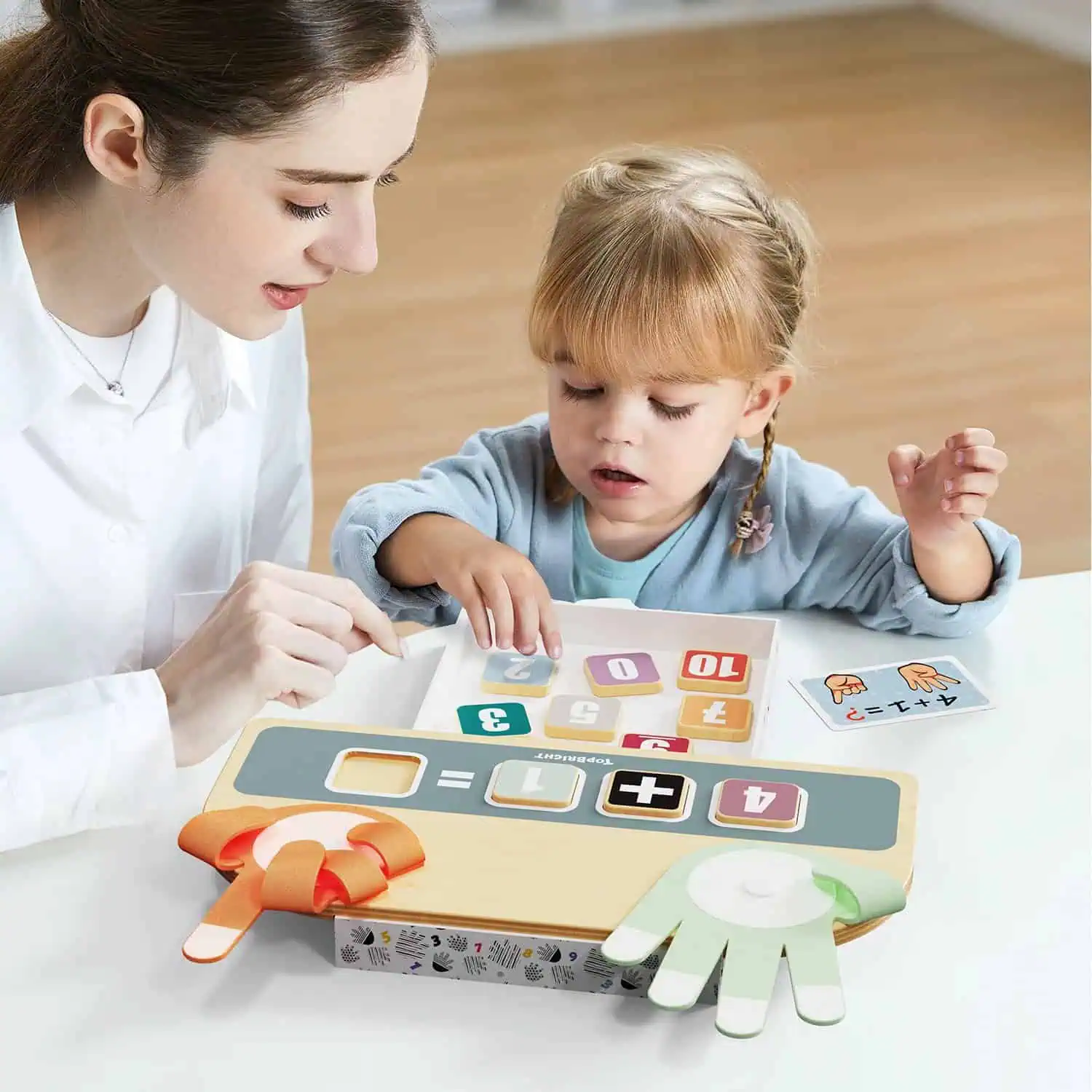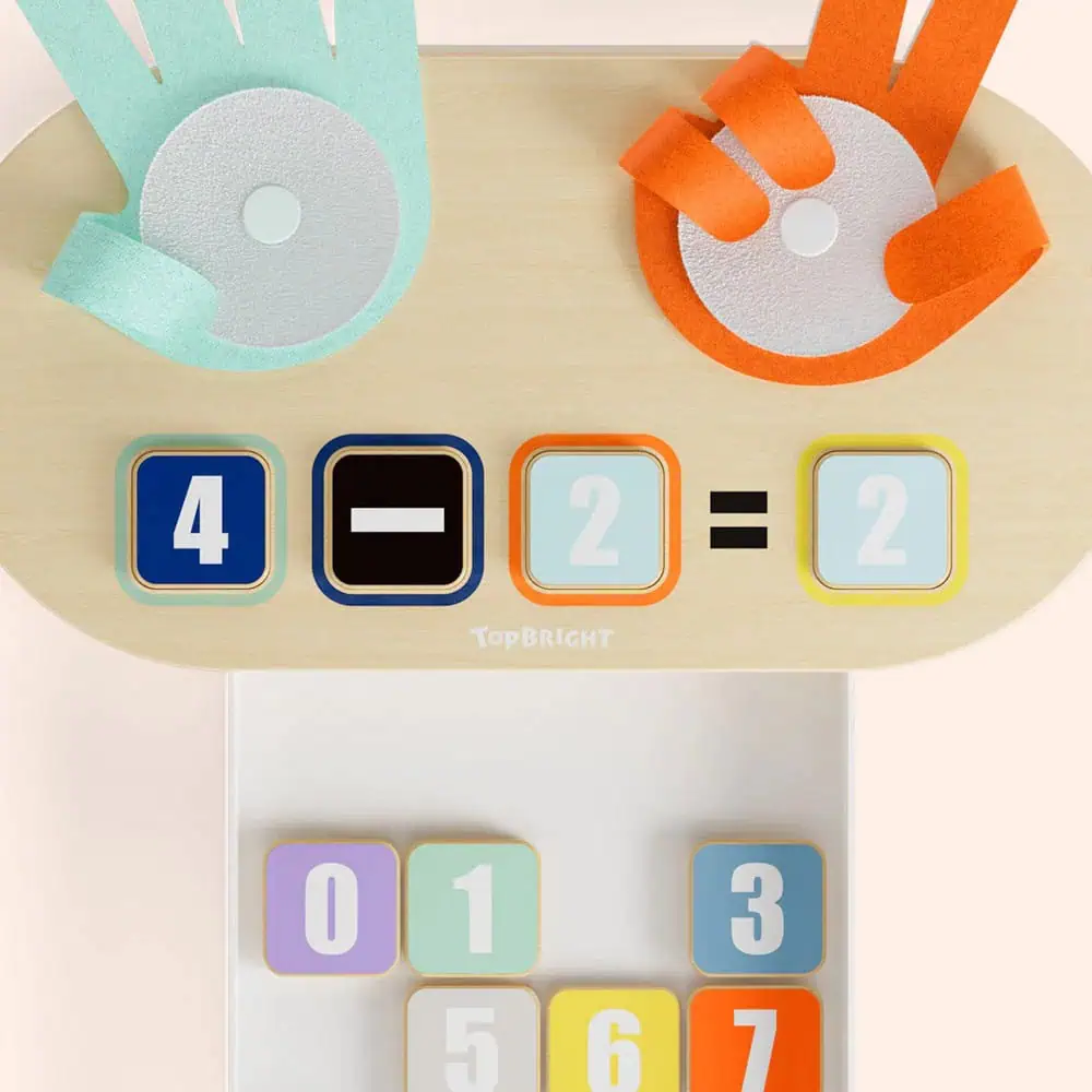 Das TOPBRIGHT Finger Arithmetic Game kombiniert farbenfrohe Holzzahlen und Lernkarten, um Kindern ab 3 Jahren spielerisch Zählen, Addition und Subtraktion beizubringen.