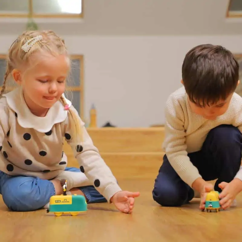 - Coding Express (Vorschul-Coding-Zug) – farbcodierte Sticker auf Holzschienen steuern Aktionen; Whistle-Control, IR-Sensor, screen-frei, FSC-Buchenholz und kompatibel mit gängigen Schienensystemen.