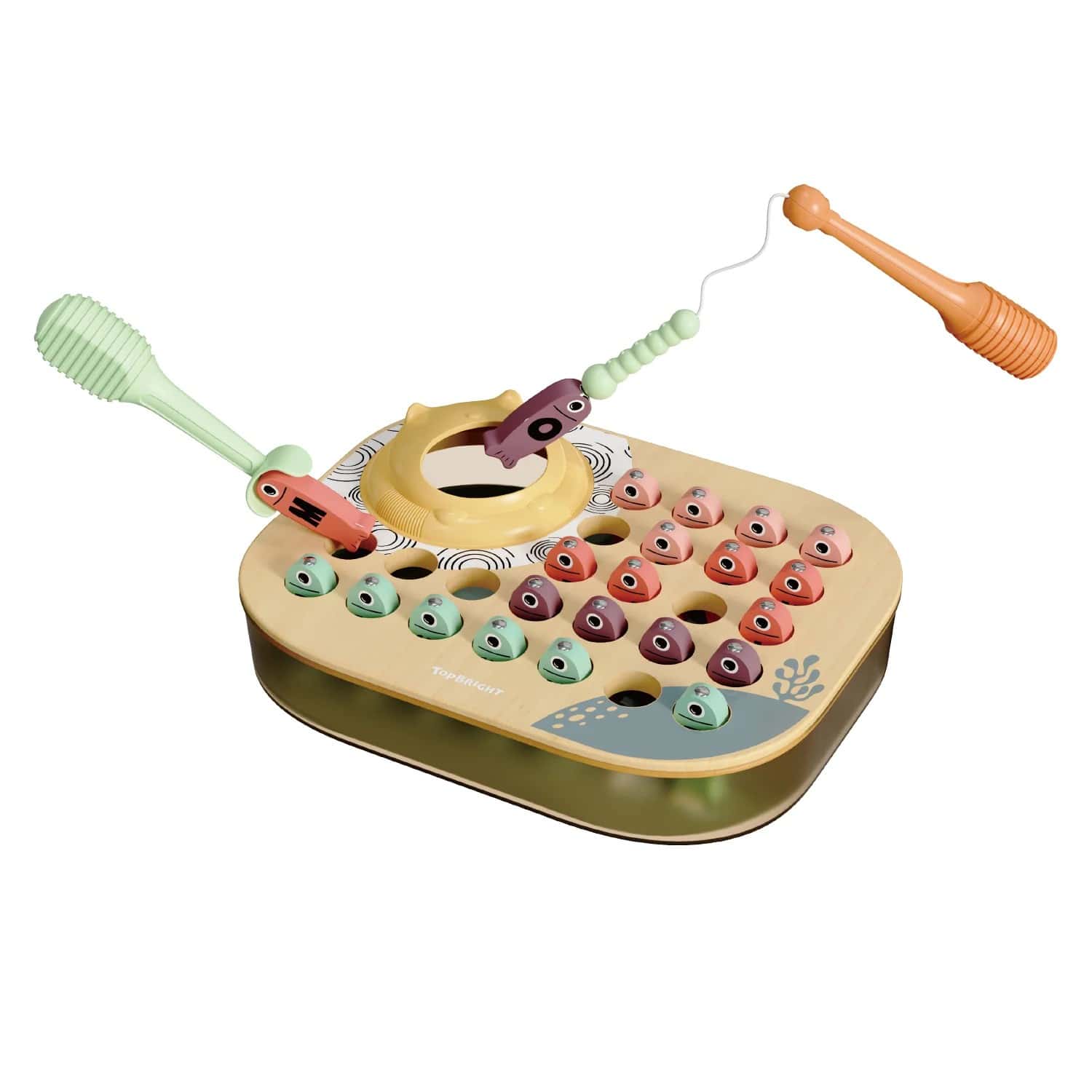 Mit dem TOPBRIGHT Magnetischen Angelspiel lernen Kinder ab 2 Jahren Buchstaben und Farben, während sie mit der magnetischen Angelrute die passenden Fische fangen und so ihre Feinmotorik verbessern.