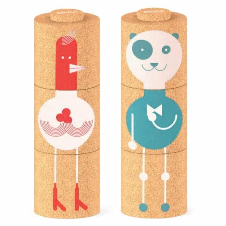 Eine neue Version des bekannten elou Totempfahls, dieses Mal mit zwei verschiedenen Tieren. Auf jedem zylindrischen Korkteil befinden sich zwei unterschiedliche Aufdrucke, sodass beim Zusammenbauen und Drehen der Teile immer wieder neue Varianten entstehen. Die Geschicklichkeit und die Denkfähigkeit von Kindern werden durch dieses Spielzeug gefördert.