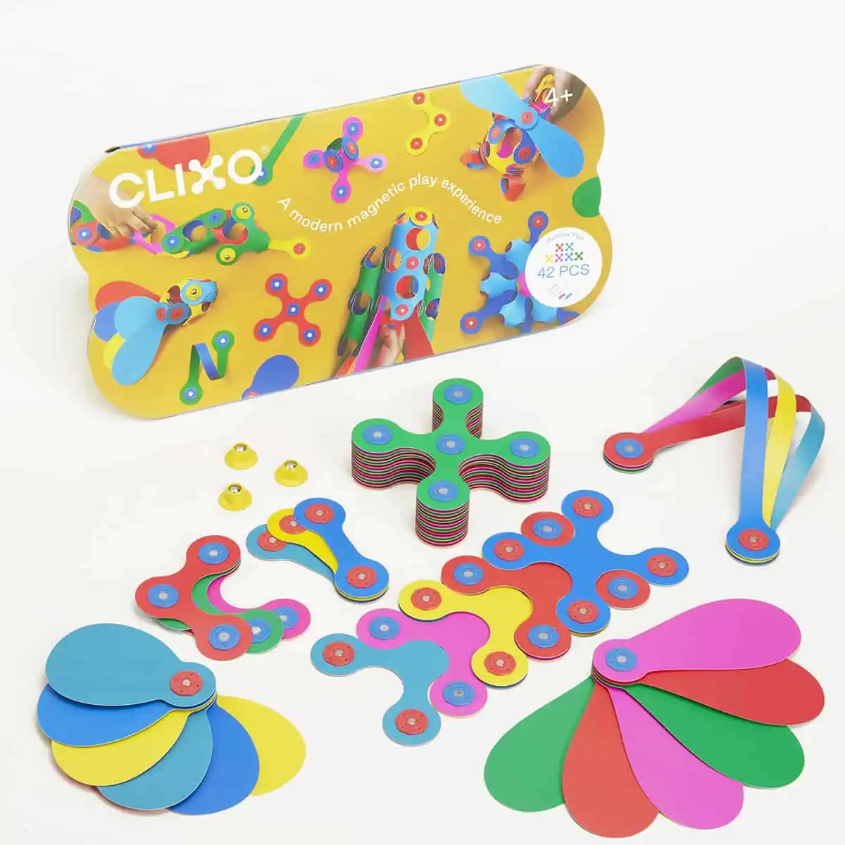 Clixo Rainbow Pack – magnetisches Konstruktionsspiel – 42 Teile – farbenreiches STEAM-Play