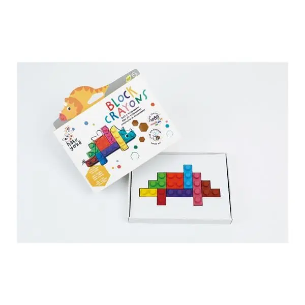 Haku Yoka Wachsmalkreiden in Blockform. Ideal für kleine Hände, ermöglichen sie präzises und großflächiges Malen ohne Flecken.