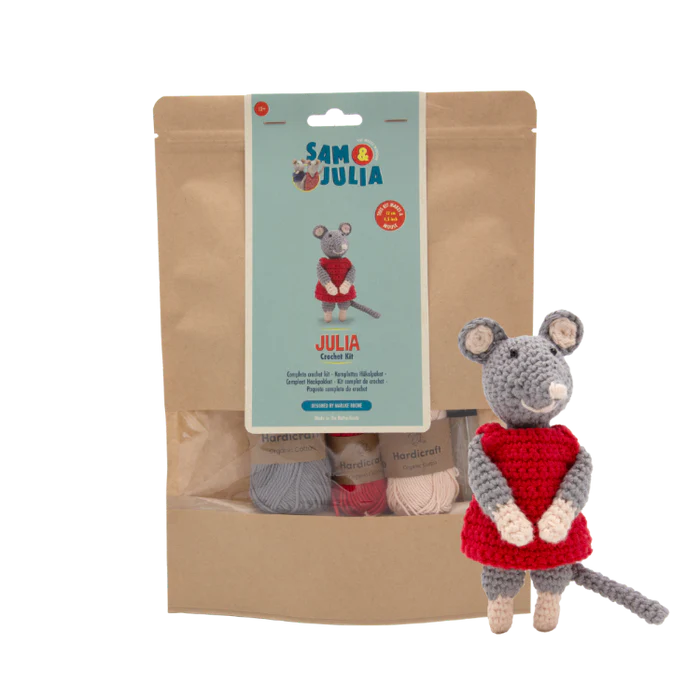 Sam & Julia – Häkelpaket Julia – komplettes Häkelset für 12 cm Maus – für Teens & Erwachsene