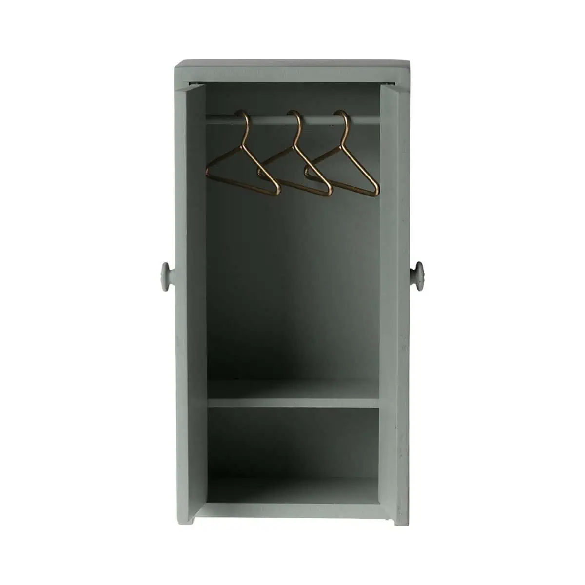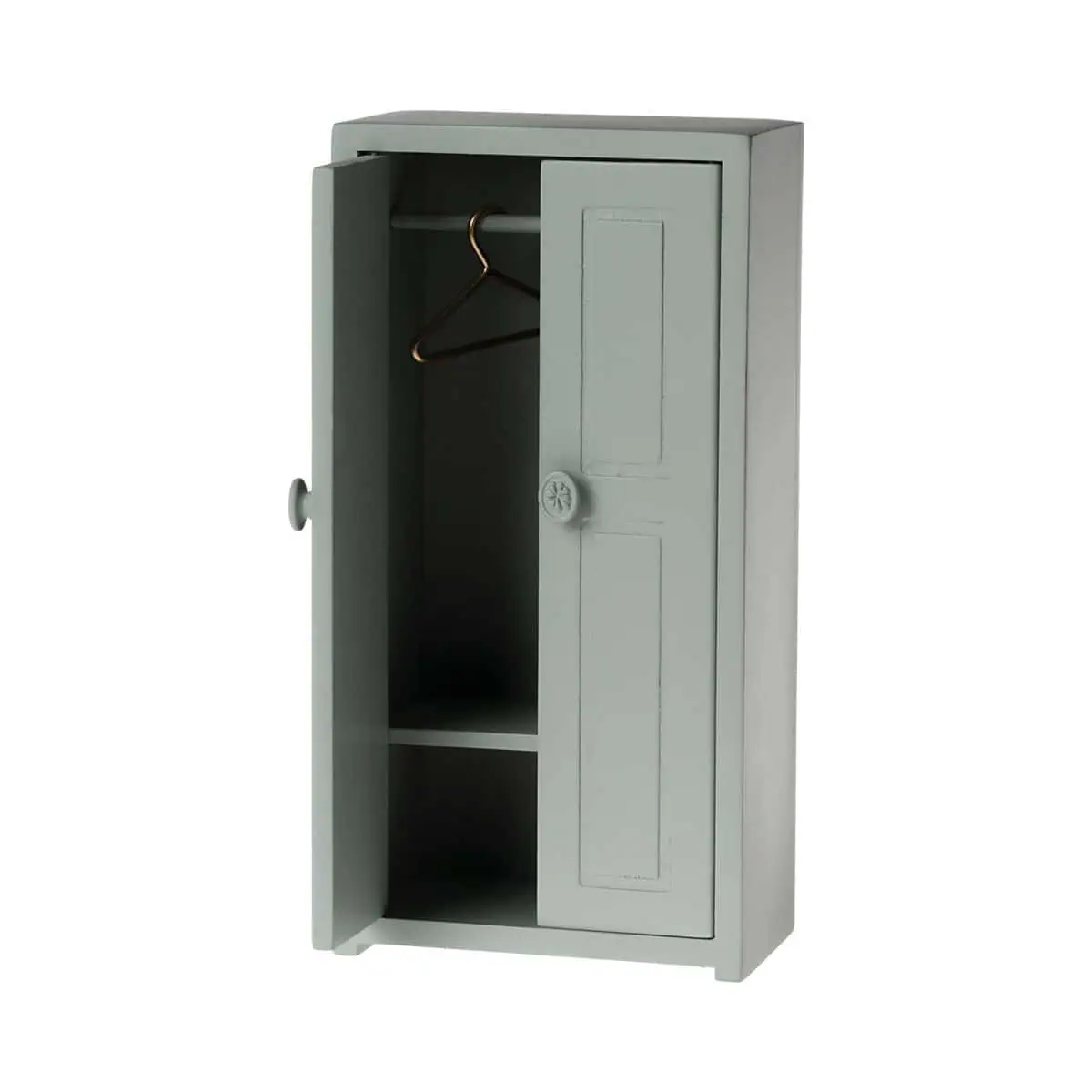 Der kleine Maileg Kleiderschrank in verschiedenen Farben hilft der Mäusefamilie, ihre Mini-Garderobe ordentlich zu verstauen. Hinter den zarten Türen ist genug Platz für Kleider, Jacken und Accessoires deiner Mäuse. Der Schrank aus Holz kommt mit drei goldenen Kleiderbügeln und fügt sich perfekt in alle Maileg-Mäusehäuser und fantasievollen Spielwelten ein – ideal zum Ergänzen, Sammeln und Verschenken.