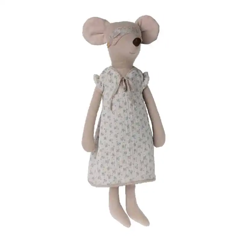 Diese Maxi Stoffmaus in Nachthemd und Schlafmaske hat sich bereits bettfertig gemacht. Die Kleidung ist wechselbar.