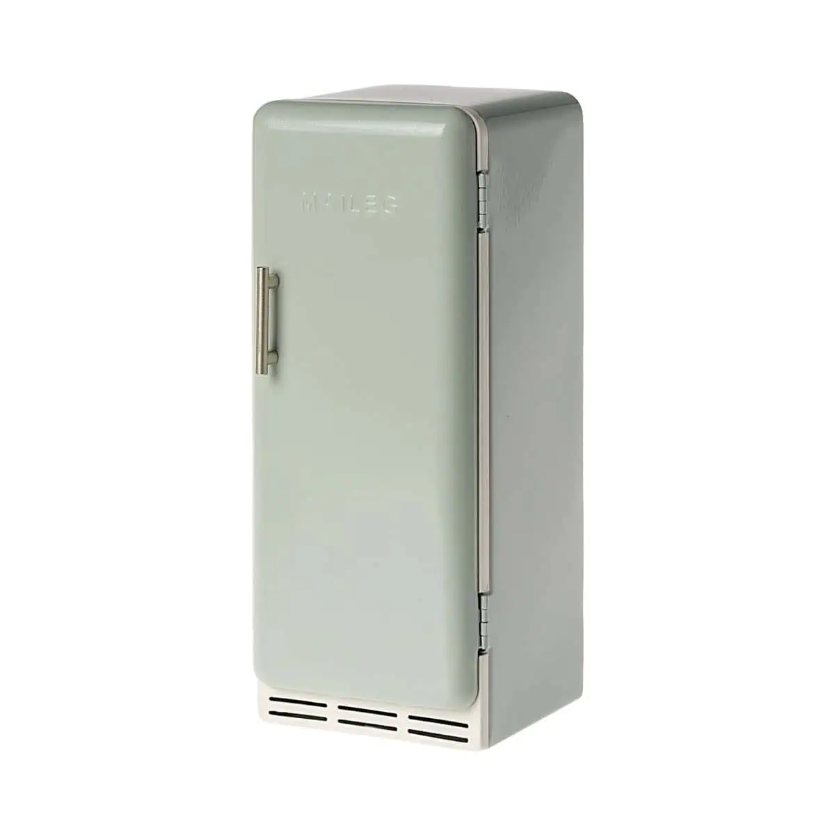 Vintage Miniatur Kühlschrank aus Metall für dein Puppenhaus. Perfekt dazu passt die Maileg Miniatur Lebensmittelbox.