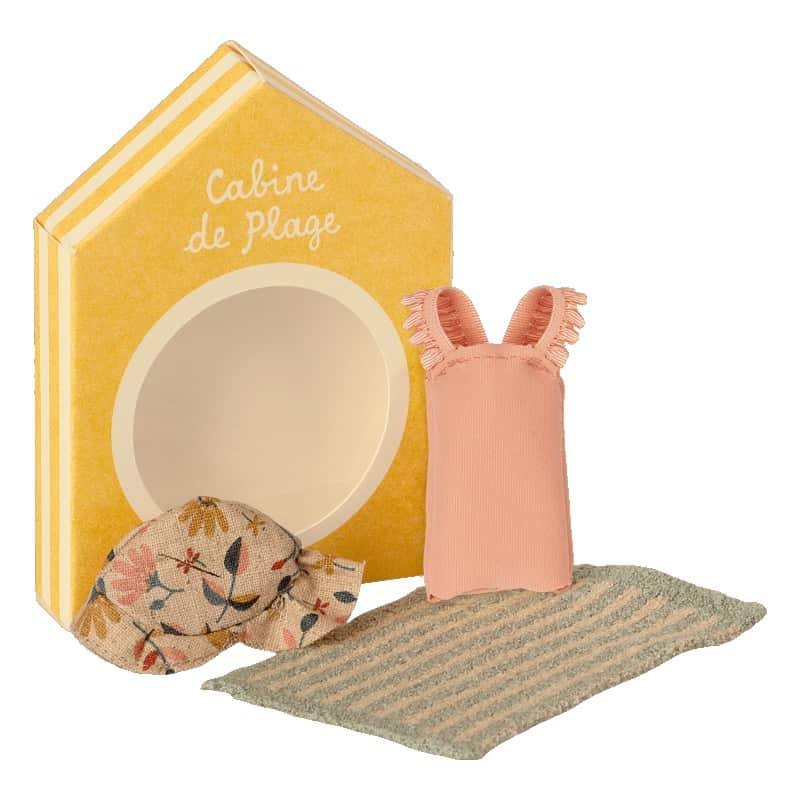 Kleines Strand-Set mit allen wichtigen Accessoires für einen Tag am Meer: Badeanzug, Handtuch und Sonnenhut. Passt perfekt zur Großen Schwester.