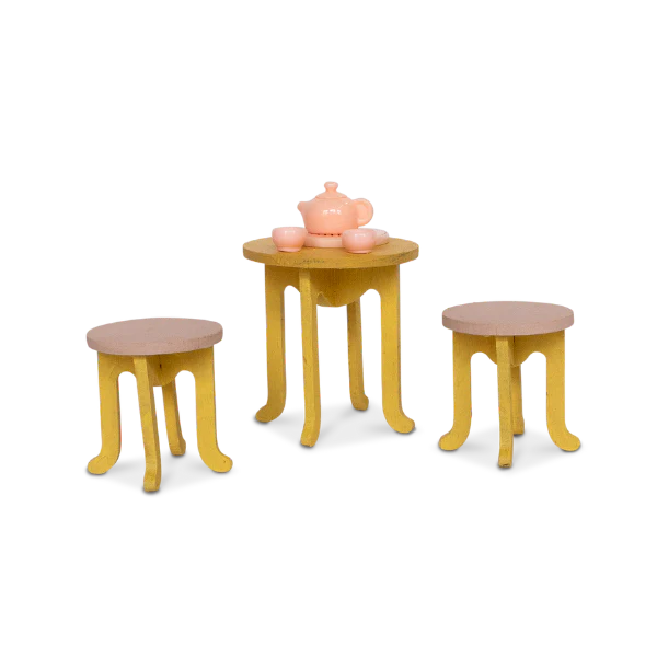 - Set enthält: Köfferchen mit bedruckten Wänden & Spiegelwand, Holzplatten für Bett/Tisch/Hocker/Ballettstange, Bettzeug, Mini-Teeservice, Dekobögen & Stickerbogen