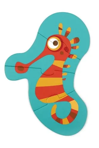 Viel Puzzlespaß mit diesen kleinen Anfängerpuzzles zum Thema Ozean. Fünf Puzzles, wundervoll illustriert für die Allerkleinsten. Fünf fröhliche Bauernhoffiguren zum Zusammenstecken: Puzzle mit Delfin (drei Puzzleteile), Puzzle Seepferd (vier Puzzleteile), Puzzle Fisch (fünf Puzzleteile), Puzzle Krabbe (sechs Puzzleteile) und Puzzle Tintenfisch (acht Puzzleteile).
