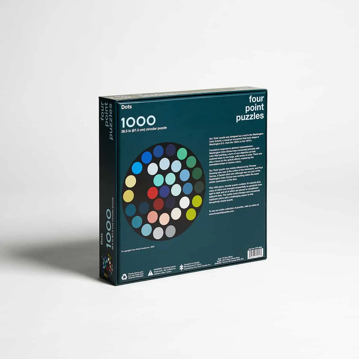 Four Point Puzzles – Punkte ist ein 1000-teiliges, kreisförmiges Puzzle mit einem Punktemotiv, dessen Design an das Visual Art Movement der Washington Color School anspielt. Das Motiv zeigt 34 farbige Punkte, von denen einige sequenziell als Farbgradienten von hell nach dunkel angeordnet sind. Die Farben der nebeneinander liegenden Punkte komplimentieren sich. Der Schwierigkeitsgrad des Puzzles ist mittel bis leicht. Die subtilen Änderungen der Farbtöne sowie das Auftreten doppelter Farben fügen einem eigentlich simplen Puzzle etwas Herausforderung hinzu.