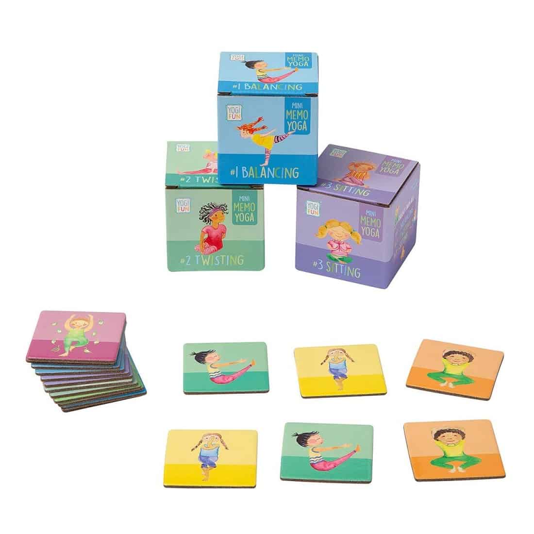 Trainiere Körper und Geist mit diesem 3-in-1 Memory-Spiel. Das Set enthält jeweils 18 Karten zu den Themen Sitzen, Verdrehen und Balancieren. Finde die Paare und nimm die abgebildete Haltung ein, um Punkte zu ergattern.