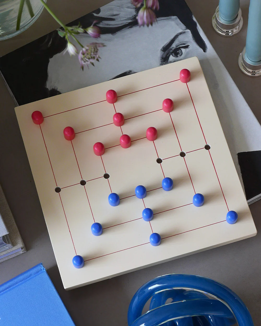 Das Nine Men’s Morris Classic verbindet ein wertiges Holzbrett mit lackierten Holzsteinen und einer dekorativen Box. Minimalistisches Design macht das Set zum Wohnaccessoire – und jederzeit bereit für eine Runde Taktik.