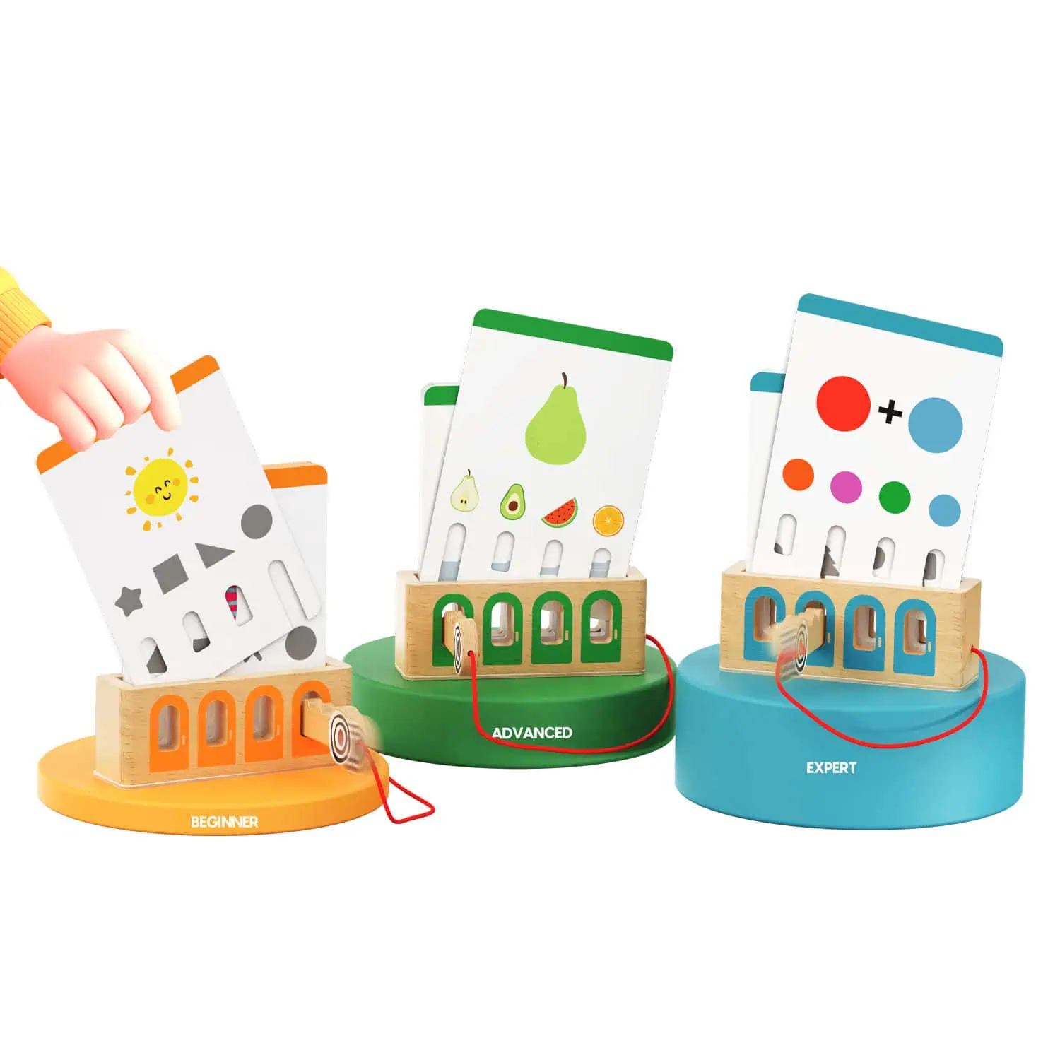Mit 40 doppelseitigen Aufgabenkarten in drei aufeinander aufbauenden Leveln – Anfänger, Fortgeschrittene und Experten – bietet das Spiel insgesamt 80 spannende Herausforderungen, von einfachen Farben- und Zahlenrätseln bis zu komplexen Bilderaufgaben. Diese mitwachsende Struktur stärkt kognitive Fähigkeiten, Geduld und Selbstbewusstsein. Ein Lernspiel, das motiviert und das Selbstvertrauen Ihres Kindes spielerisch wachsen lässt.