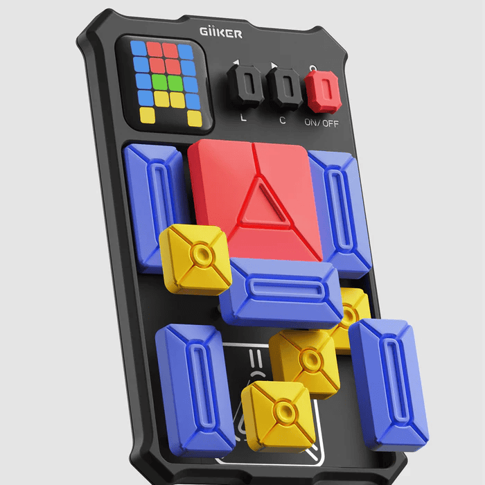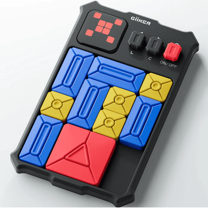 Das GiiKER Super Slide ist ein elektronisches Sliding-Puzzle mit 500+ Aufgaben. Stelle das Startfeld nach LED-Anzeige ein und schiebe den roten Block in die Zielzone. Der Learn-Mode gibt Schritt-für-Schritt-Hinweise, der Challenge-Modus zieht das Tempo an – ideal für fokussiertes Denken, Reisespiel und bildschirmfreie Pausen.