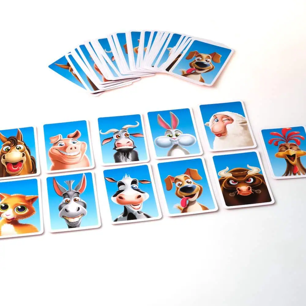 Das lustige Partyspiel für Groß und Klein. Sammle 3er-Sets von Karten durch Nachahmen von Tiergesichtern. Wer die meisten Sets hat, gewinnt!