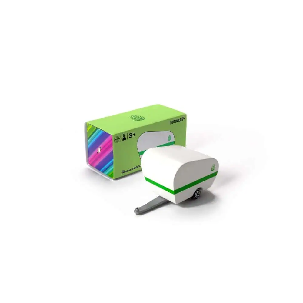 Der Candylab Pinecone Camper ist ein kleiner Holz-Wohnwagen für große Abenteuer in der Candycar-Welt. Dank magnetischer Kupplung lässt er sich an alle Fahrzeuge der „Camper Friendly“-Kollektion andocken – perfekt für Rollenspiel, Roadtrips im Kinderzimmer und kreative Outdoor-Stories.
