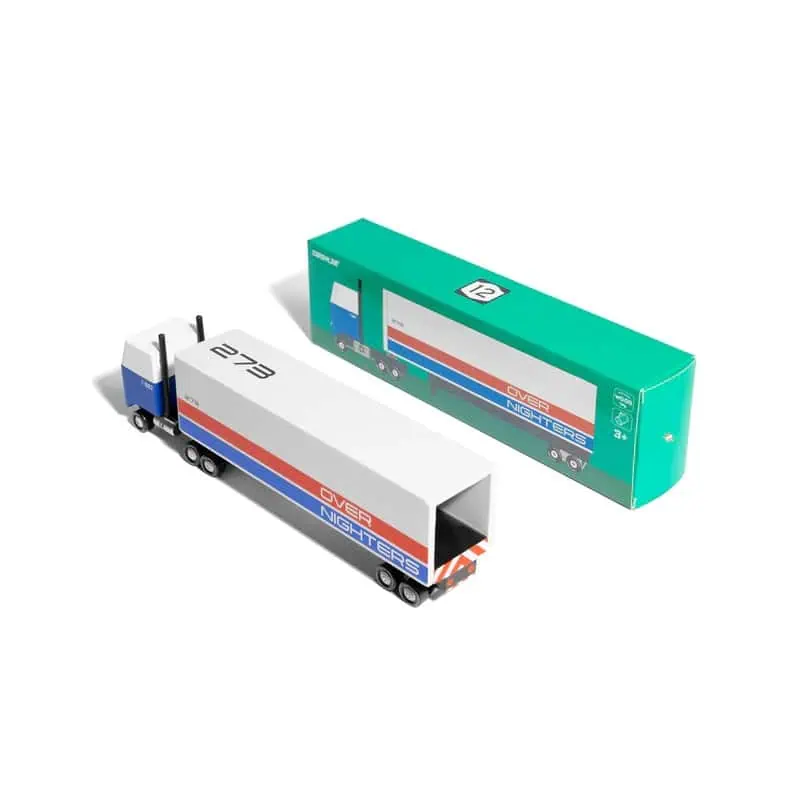 Der Candylab Overnighters Semi Truck bietet endlosen Spielspaß mit seinem offenen Anhänger, der Platz für ein CANDYCAR® bietet. Hergestellt aus massivem Buchenholz, kombiniert mit robusten Gummireifen und langlebigen Kunststofffelgen, ist dieser LKW sowohl stabil als auch stilvoll. Die leuchtende, wasserbasierte Lackierung und die Urethanbeschichtung verleihen dem Truck einen authentischen Look. Der Overnighters Semi Truck ist perfekt für Kinder ab 3 Jahren, die sich für LKWs und fantasievolles Spielen begeistern. Sicherheitstests nach US CPSIA sowie europäischen, australischen und neuseeländischen Standards sorgen für unbeschwertes Spielen.