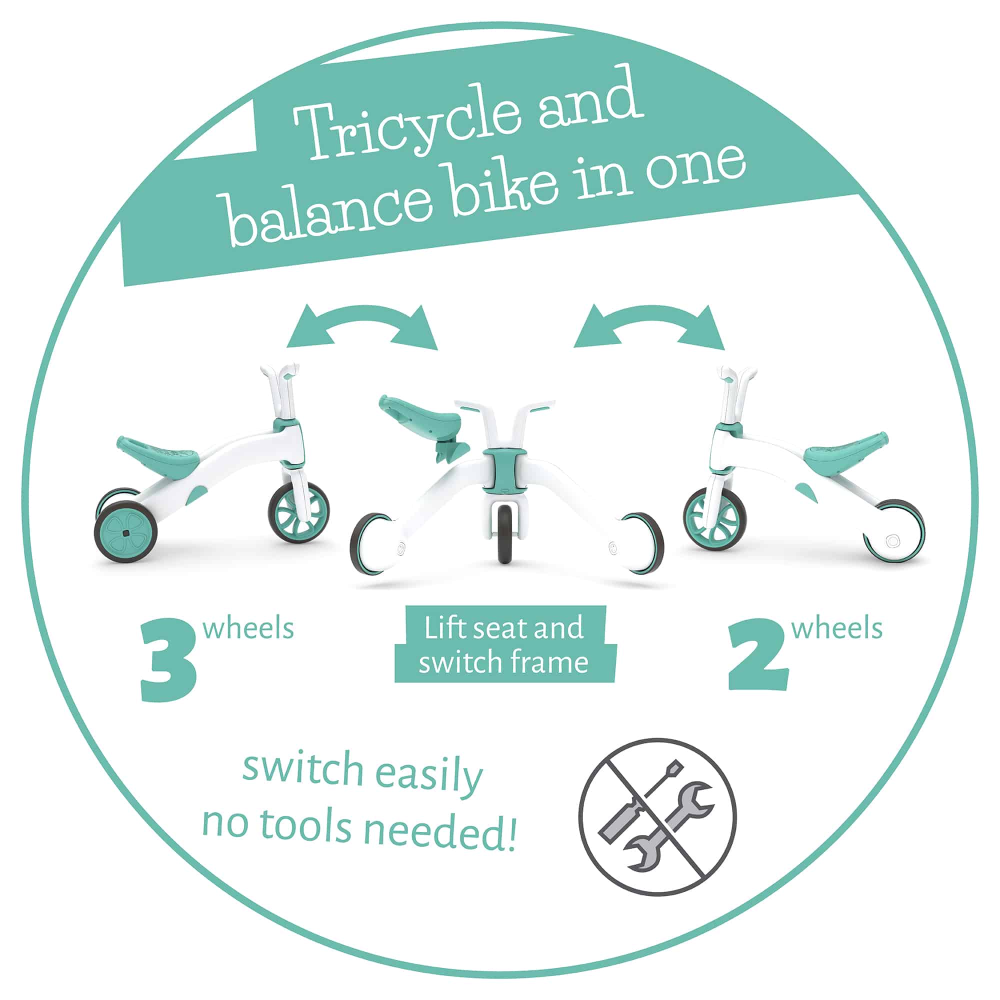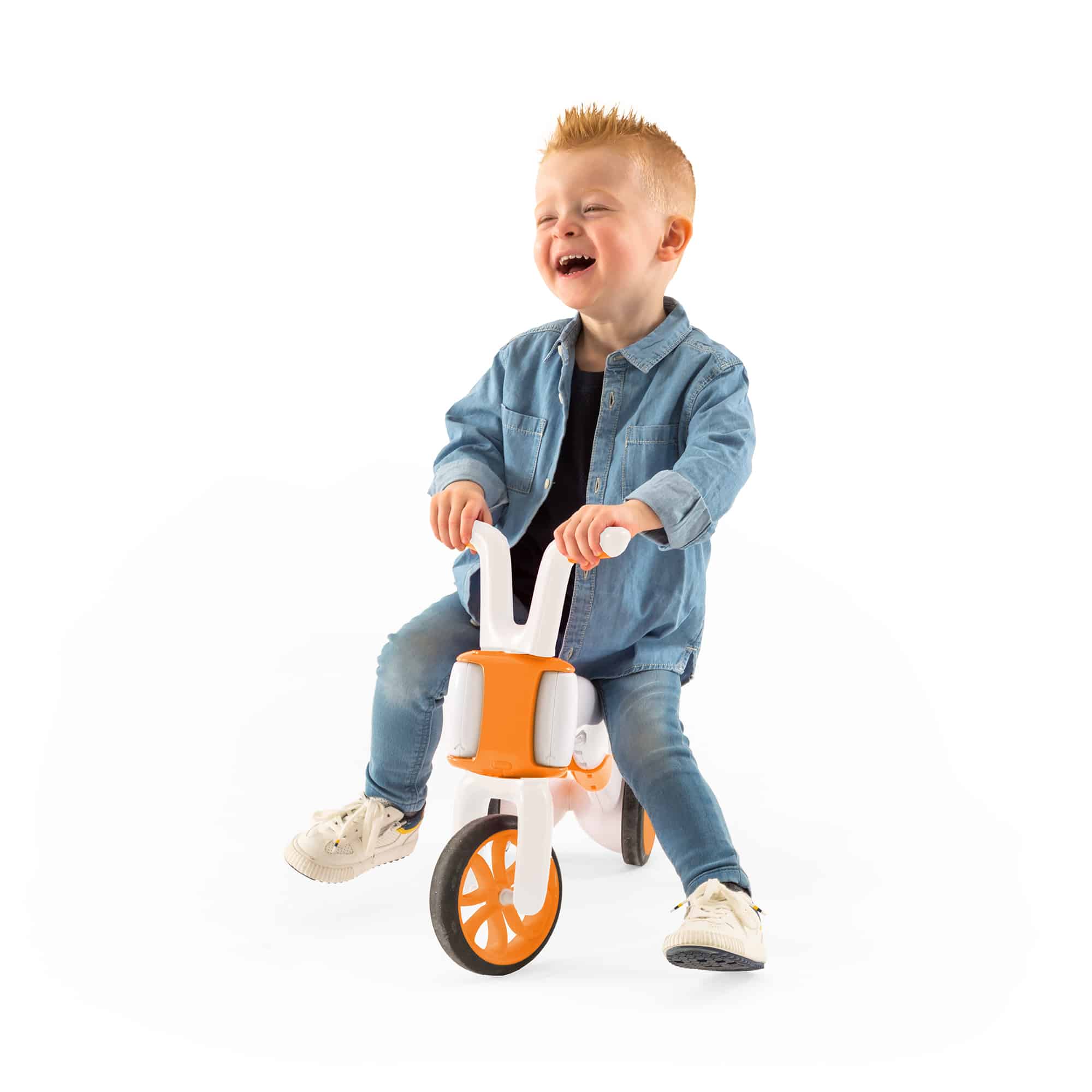 Chillafish Bunzi ist das Laufrad mit genau so vielen Rädern, wie du benötigst. Denn du hast selbst in der Hand, ob es als Dreirad oder Zweirad daherkommt. In nur wenigen Handgriffen lässt es sich vom einen zum anderen umbauen – und das ganz ohne Werkzeug.