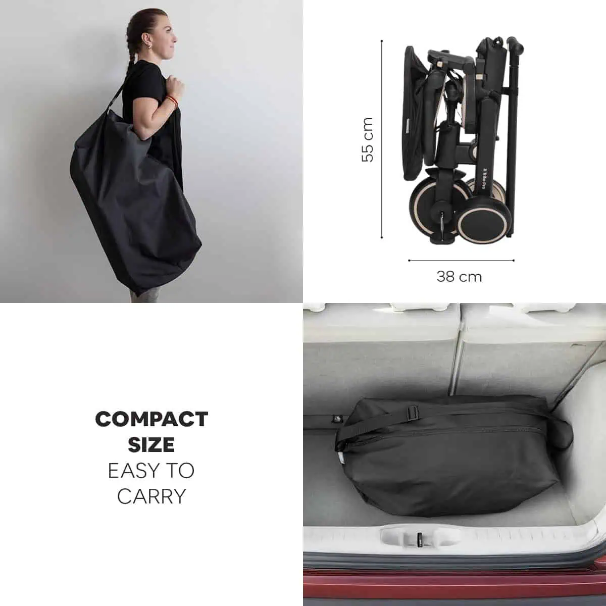 Dank seiner kompakten Falttechnik lässt sich das X Trike Pro in nur 3 Sekunden zusammenklappen und im mitgelieferten Tragebeutel bequem verstauen oder transportieren. Ob Wochenendtrip, Ausflug oder Alltag: Dieses Gefährt ist immer startklar!