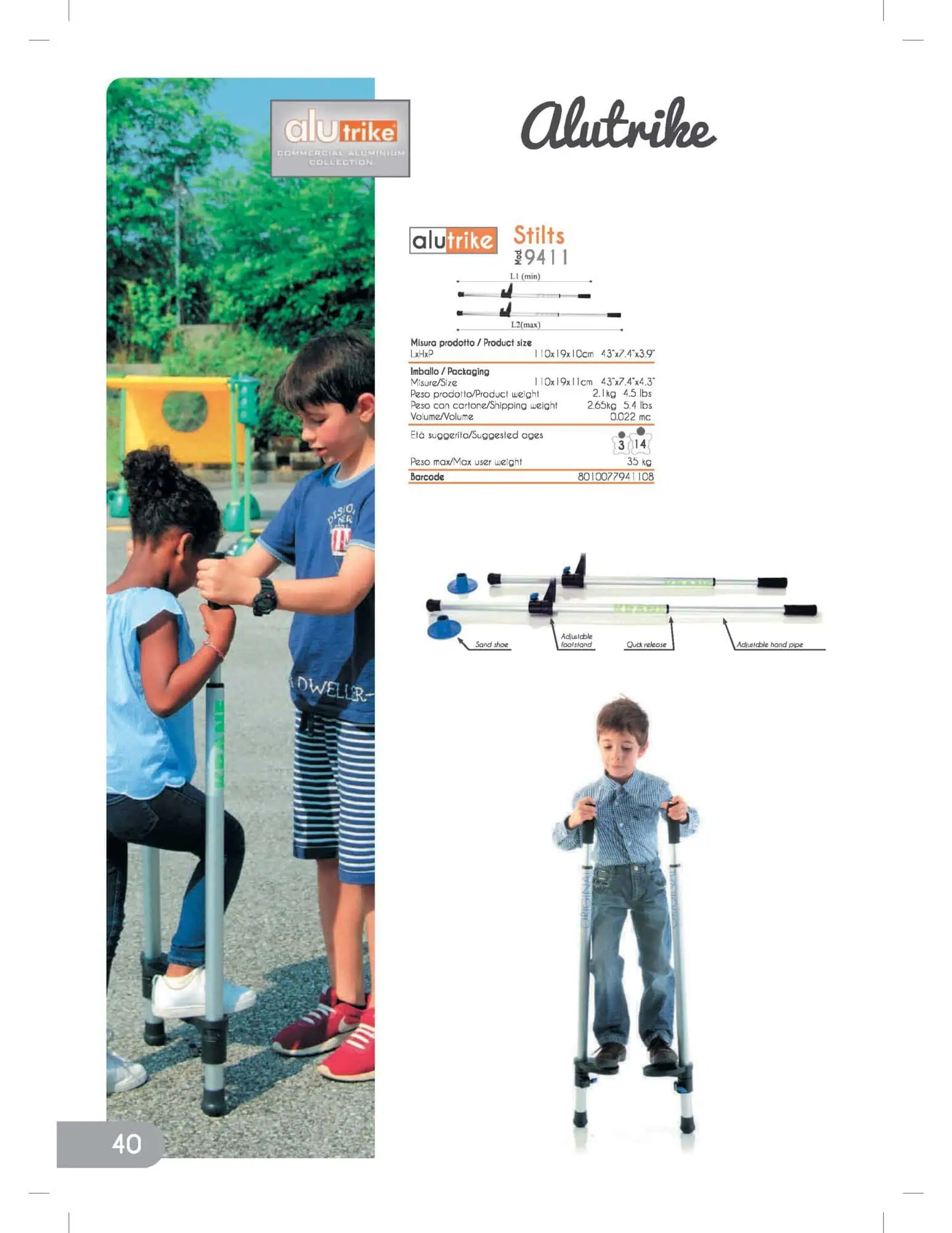 Die Alutrike Aluminiumstelzen sind ideal für alle Altersgruppen. Mit verstellbarer Höhe, rutschfesten Griffen und stoßfestem Design fördern sie Balance und Koordination. Perfekt für drinnen und draußen.