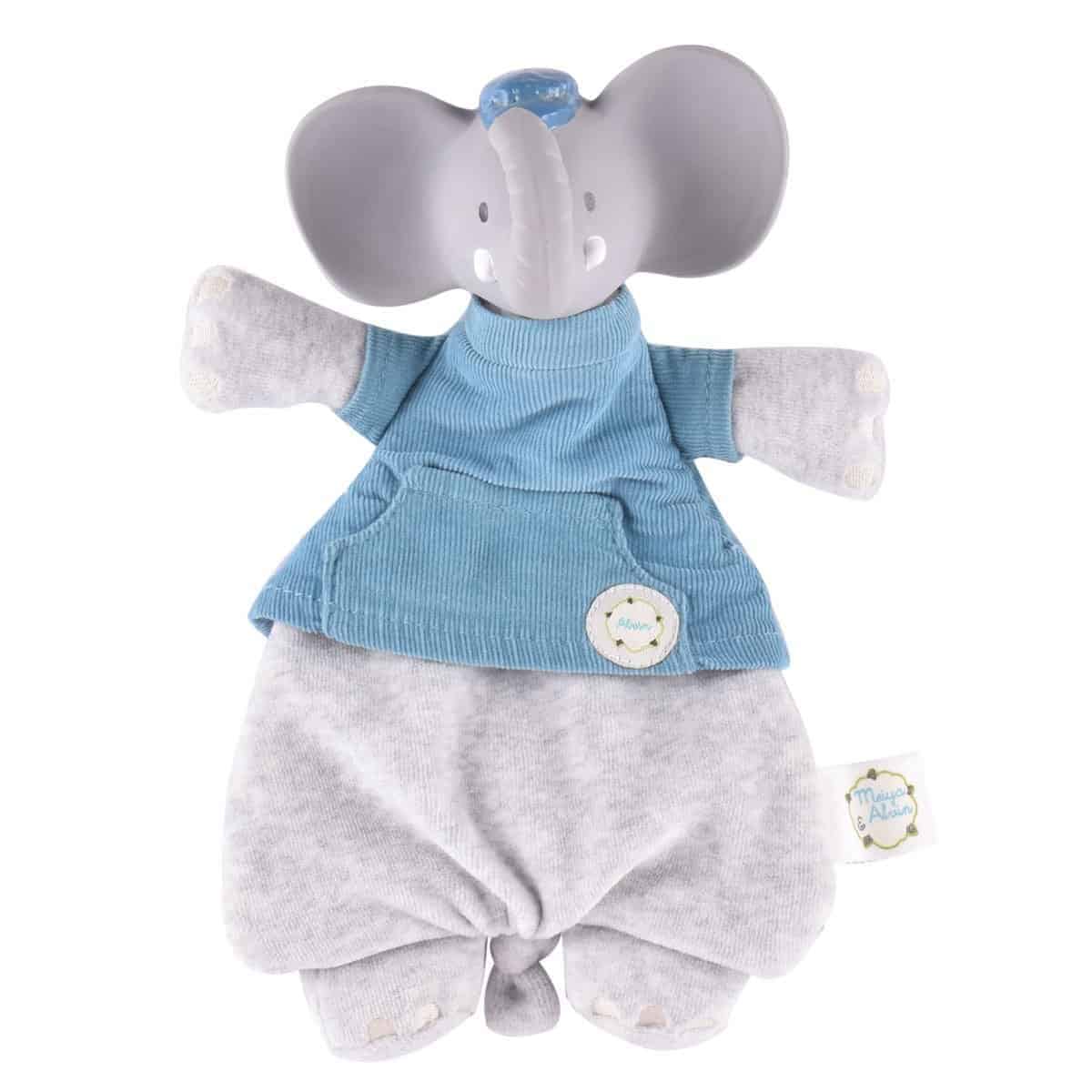 Alvin der Kuschelelefant ist mit seinem flauschigen Körper und seinem Kopf aus Gummi nicht nur ganz toll zum Kuscheln geeignet, sondern ist auch ein gutes Hilfsmittel für Babys, die gerade die ersten Zähne bekommen.